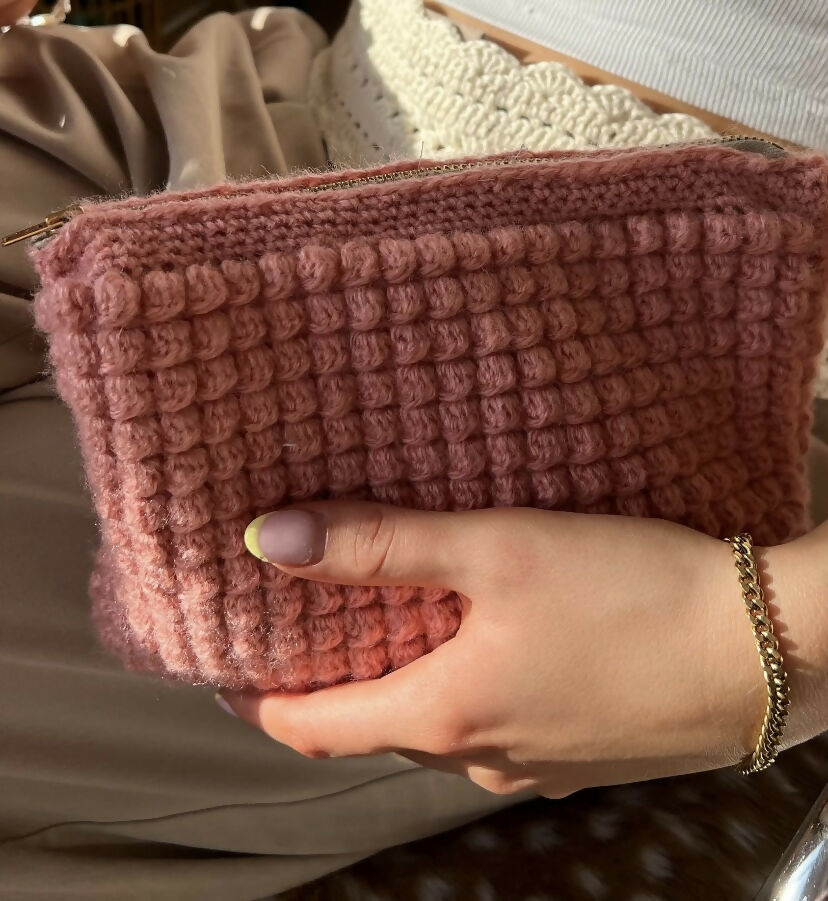 Denne hækleopskrift guider dig trin for trin til at lave en smuk og struktureret Bubble Taske, som hækles i boblemasker for et moderne og iøjnefaldende look. Opskriften er let at følge og egner sig til både øvede begyndere og erfarne hæklere.