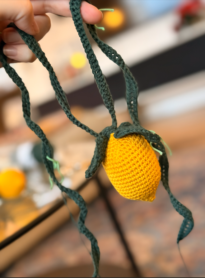 Citronranken er hæklet af bomuld 8/4 med hæklenål str. 3