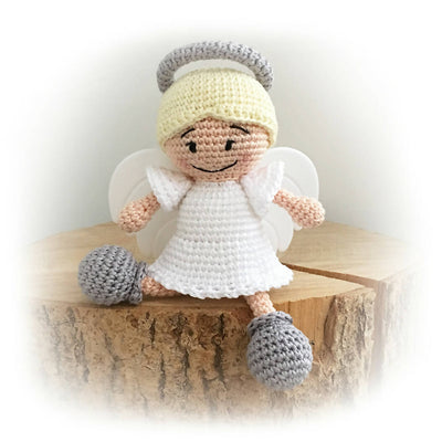 Hun er designet som babylegetøj, med rasler i fødderne, en glorie som kan holdes fast om, hives og gumles i, samt flotte hvide (bide)vinger fremstillet af fødevaregodkendt plast, som kan foldes ind og ud.