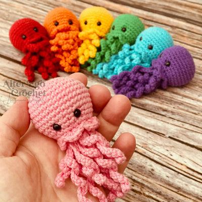 Jenny bliver 9 cm hvis du bruger samme garn og hæklenål som mig. Du kan bruge andet garn eller hæklenål, hvis den skal være større eller mindre.