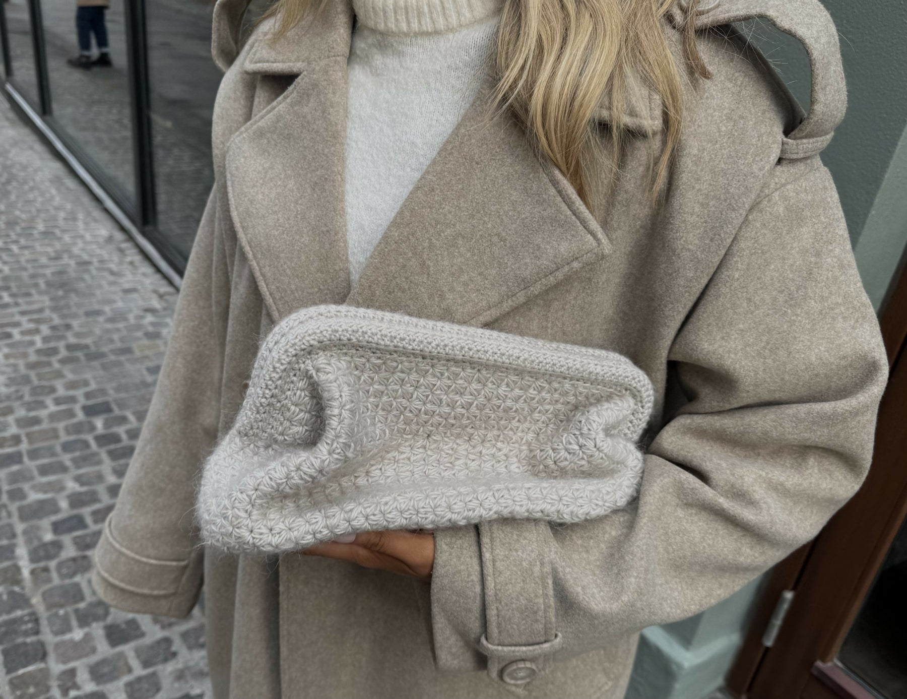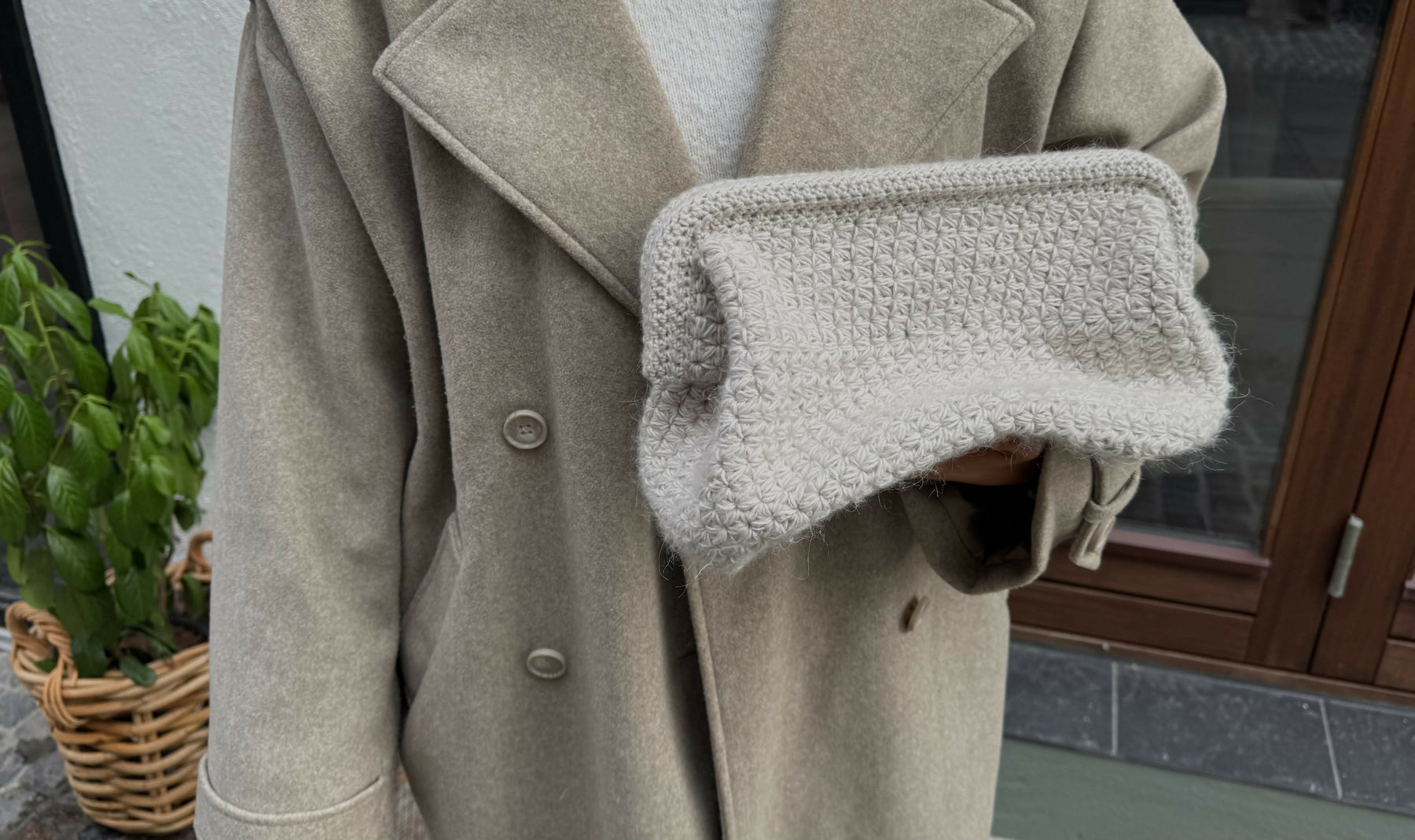 Jasmine Clutch er en elegant og moderne hækleopskrift, der kombinerer den smukke, teksturerede Jasmine Stitch med en blød garnkombination af bomuld og mohair. Tasken hækles rundt fra en fast bund i halve stangmasker og op i et luftigt blomstermønster, før den afsluttes med en metalramme, som giver et professionelt og holdbart finish.