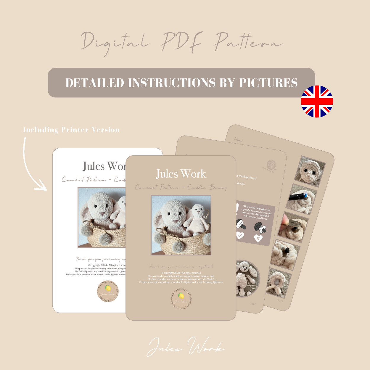 Hækleopskrift på kanin bamsen fra Jules Work.