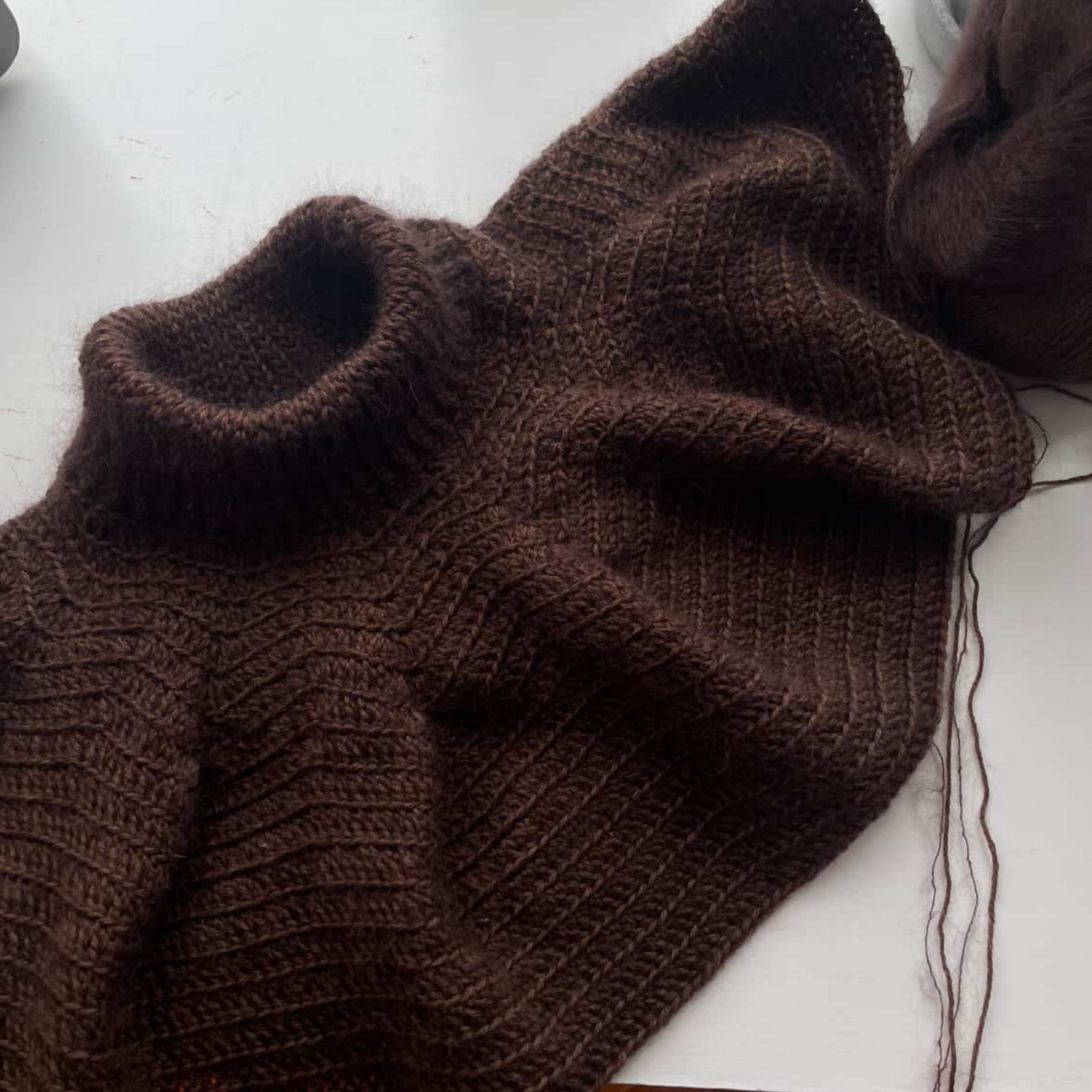 TIP: brug gerne en nål med en lidt spids tip til kraven, da det godt kan være lidt udfordrende at komme igennem mohair og merinould, med den forkerte nål. Jeg bruger Symfonie hæklenål, som egentlig er beregnet til tunesisk hækling, men fungerer super godt til dette projekt.