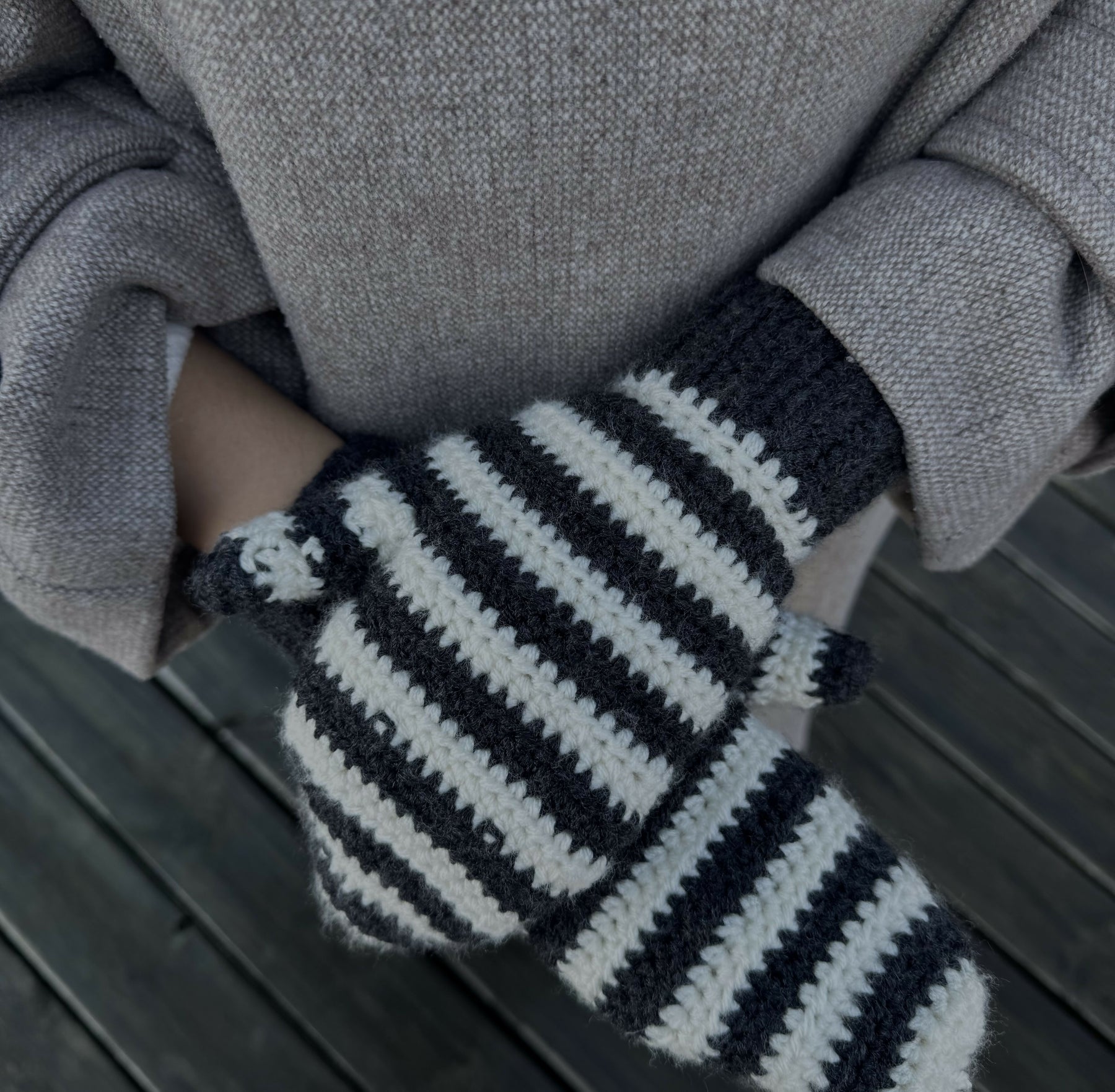Denne opskrift giver dig et par varme, simple og begyndervenlige hæklede luffer, der hækles i chunky garn (dobbelt akryl). Lufferne hækles fra håndleddet og op, med en ribbet manchet og et nemt tommelhul, der gør opskriften oplagt for både nye og øvede hæklere.