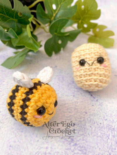 - Garn ( Jeg bruger 8/4 bomuld, men du kan bruge lige det du har lyst til. De bliver rigtig søde i f.eks. velour garn. De bruger meget lidt garn, så det er perfekt til rester)
