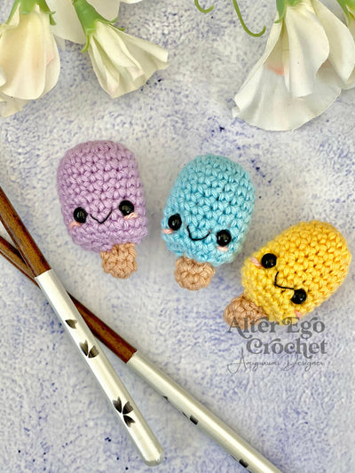 - Garn ( Jeg bruger 8/4 bomuld, men du kan bruge lige det du har lyst til. De bliver rigtig søde i f.eks. velour garn. De bruger meget lidt garn, så det er perfekt til rester)