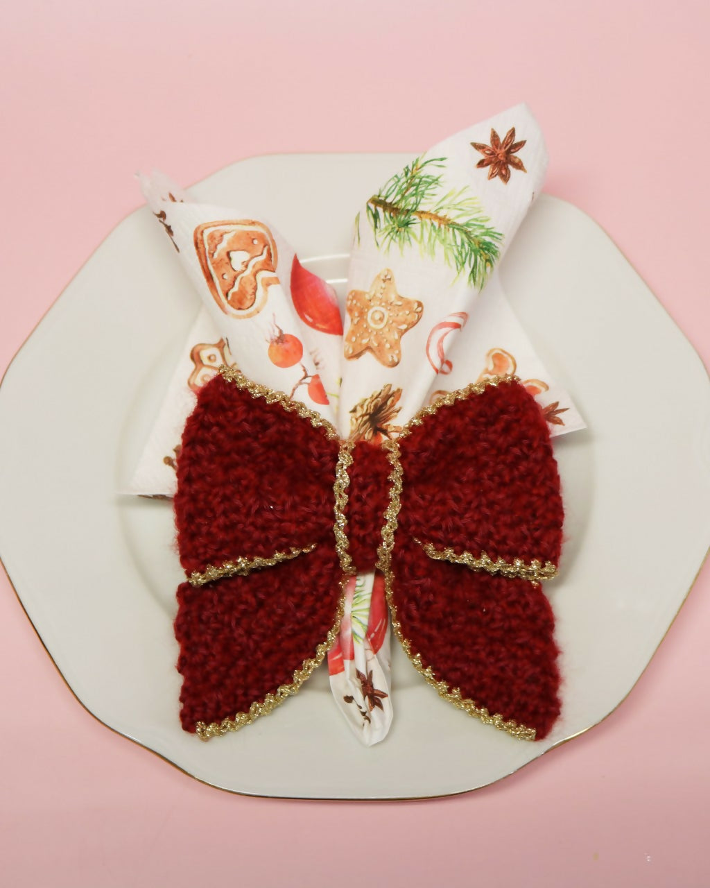 For at hækle Niahs Julesløjfe kan du bruge det garn du har lyst til i de farver du har