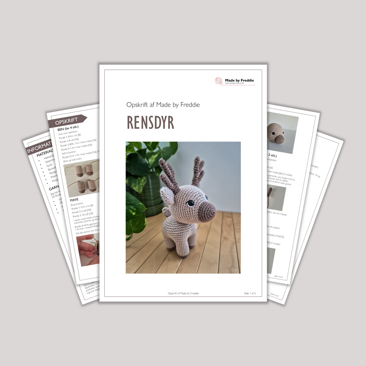 Rensdyret er hæklet i 8/4 bomuld på nål 2,0 mm, i følgende farver: