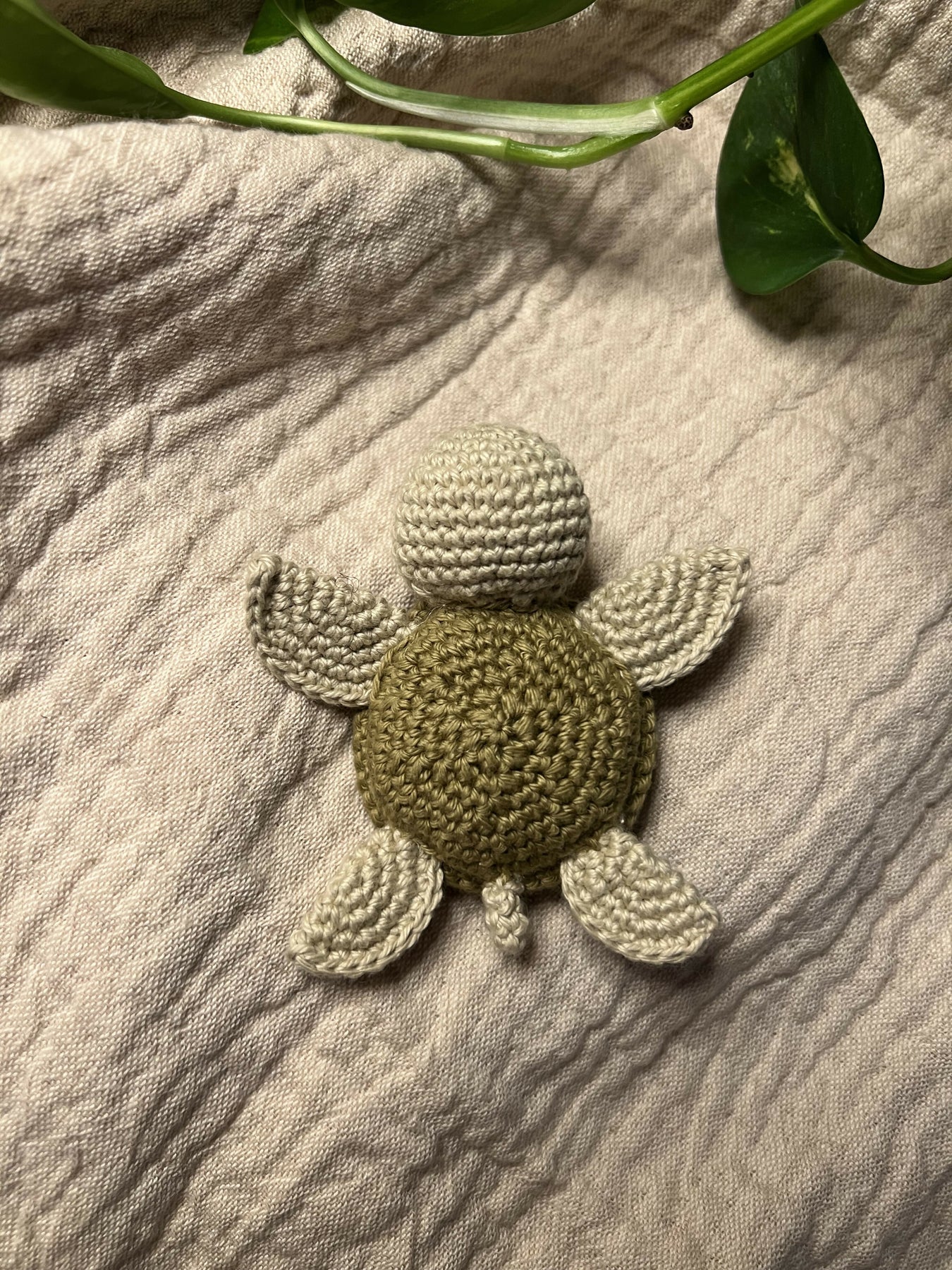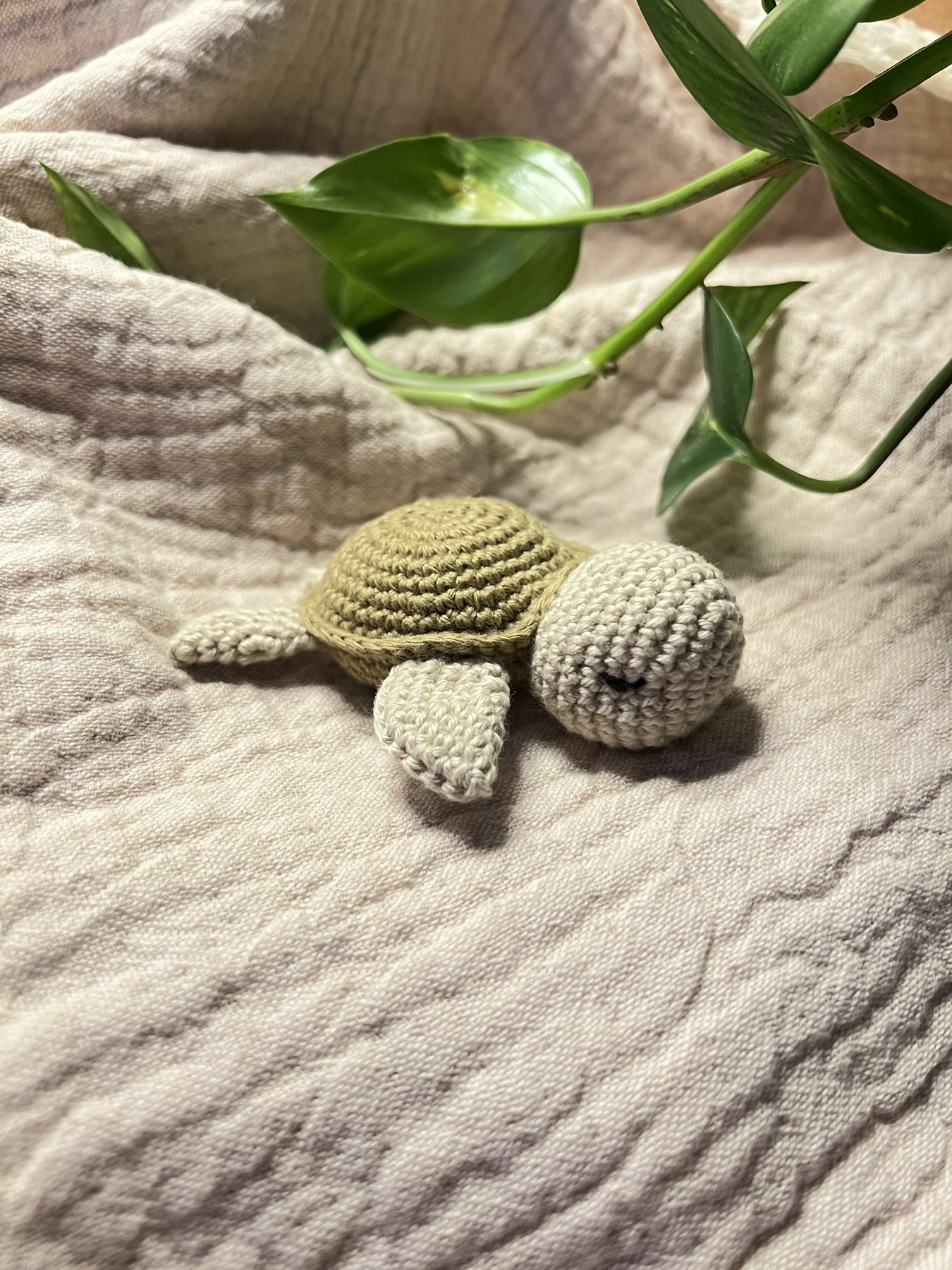 Skildpadden Skille er til dig, der er igang med hækling til de mindste størrelser. Denne skildpadde kan bruges til aktivitetsstativ, barnevognskæde, rangle eller som bare helt almindelig lille skildpadde til pynt :-)