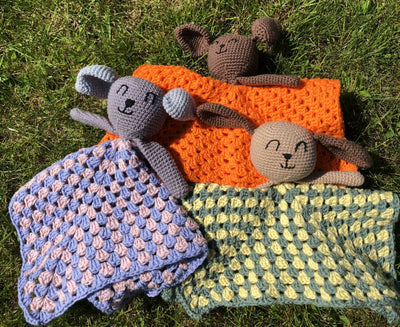 Opskriften er på en sutteklud og den kan laves i alle farver. Selve suttekluden måler ca. 11 cm x 11 cm.
