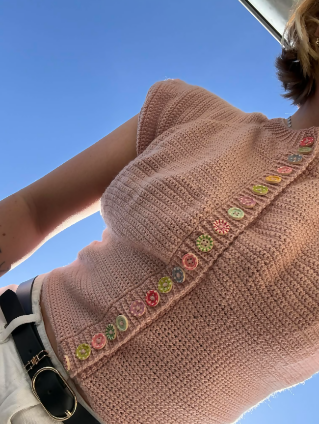 Da opskriften er lavet som made-to-measure, kan de fleste garntyper, hæklenål-størrelser og knappe-størrelser anvendes. Det der er angivet i opskriften, er blot det jeg har gjort, og hvad jeg anbefaler – men tag dig endelig kunstnerisk frihed til at gøre som DU ønsker – det er kun fantasien der sætter grænser. <3