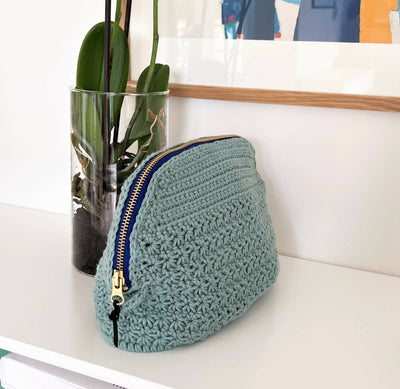af:marie Tisvilde Toilettaske er en rummelig toilettaske, der er hæklet i et fint starstitch-mønster. Tasken har en afrundet kant langs med lynlåsen og en dyb åbning, så man nemt kan finde det, man leder efter.