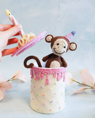 Festaben Frank passer perfekt i kage-æsken, og kan gøre enhver fest lidt ekstra festlig! Æsken med aben er oplagt at bruge som supplement til eksempelvis en pengegave.