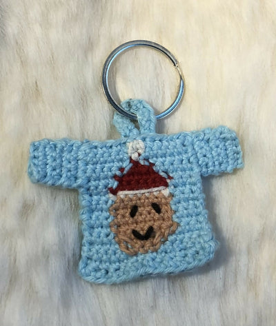 Julesweateren med en nisse er en sød tilføjelse til nøglebundtet. Den færdige nøglering må gerne sælges.