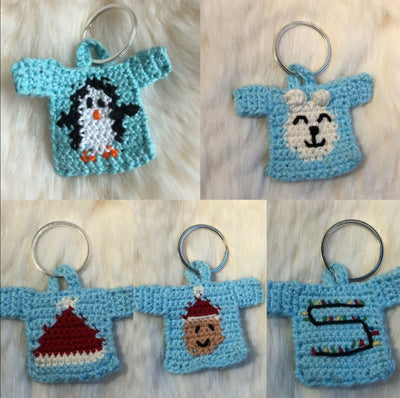 Her er alle opskrifterne på julesweatre samlet i en opskrift. De er en fedt tilføjelse til nøglebundet. Når nøgleringene er færdige, må de gerne sælges.