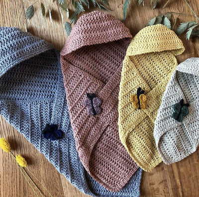 Sommerfuglesvøbet er lavet til gruppen sommerfuglebørn, der leverer svøb til dødfødte rundt omkring på landets hospitaler. Opskriften er derfor gratis. Den er nem at gå til med gode billeder til at vejlede. Til opskriften skal du bruge bomuldsgarn i afdæmpede farver og hæklenål 3.