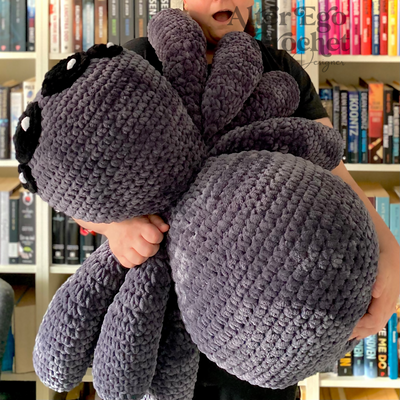 Tony bliver 75 x 75 cm. hvis du bruger samme garn og hæklenål som mig. Du kan sagtens bruge en anden nål og andet garn, hvis han skal være større eller mindre.