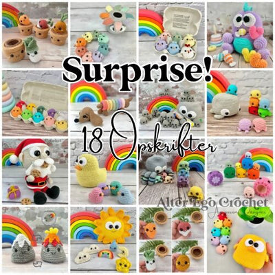 Se de individuelle opskrifter for mere info om garnforbrug, masker og størrelse.