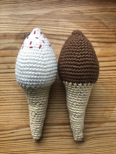 Opskriften indeholder en skrevet vejledning til at hækle isvaffel og 3 varianter af ispindene. Isvaflen bliver ca. 14 cm og ispindene bliver ca. 17 cm. Isvaflerne kan laves i alle farver og der kan broderes krymmel på isene. Ispindene kan laves i tre varianter: sodavandsis, sodavandsis med chokolade og flødeis. De kan også laves i alle farver.