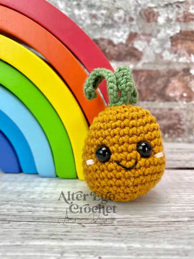 Kartoflen bliver 7 cm, hvis du bruger samme garn og hæklenål som mig. Du kan sagtens bruge en anden nål og andet garn, hvis han skal være større eller mindre.
