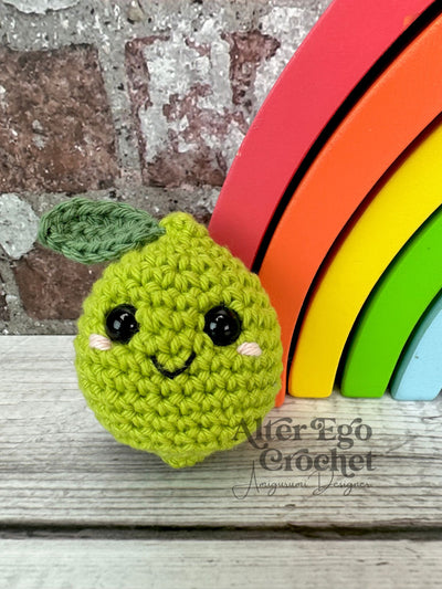- Garn. Jeg har brugt 8/4 bomuld. Du skal bruge 4 g lime, 1 g grøn og lidt lyserød