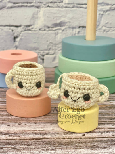 - Garn ( Jeg bruger 8/4 bomuld, men du kan bruge lige det du har lyst til. De bliver rigtig søde i f.eks. velour garn. De bruger meget lidt garn, så det er perfekt til rester)