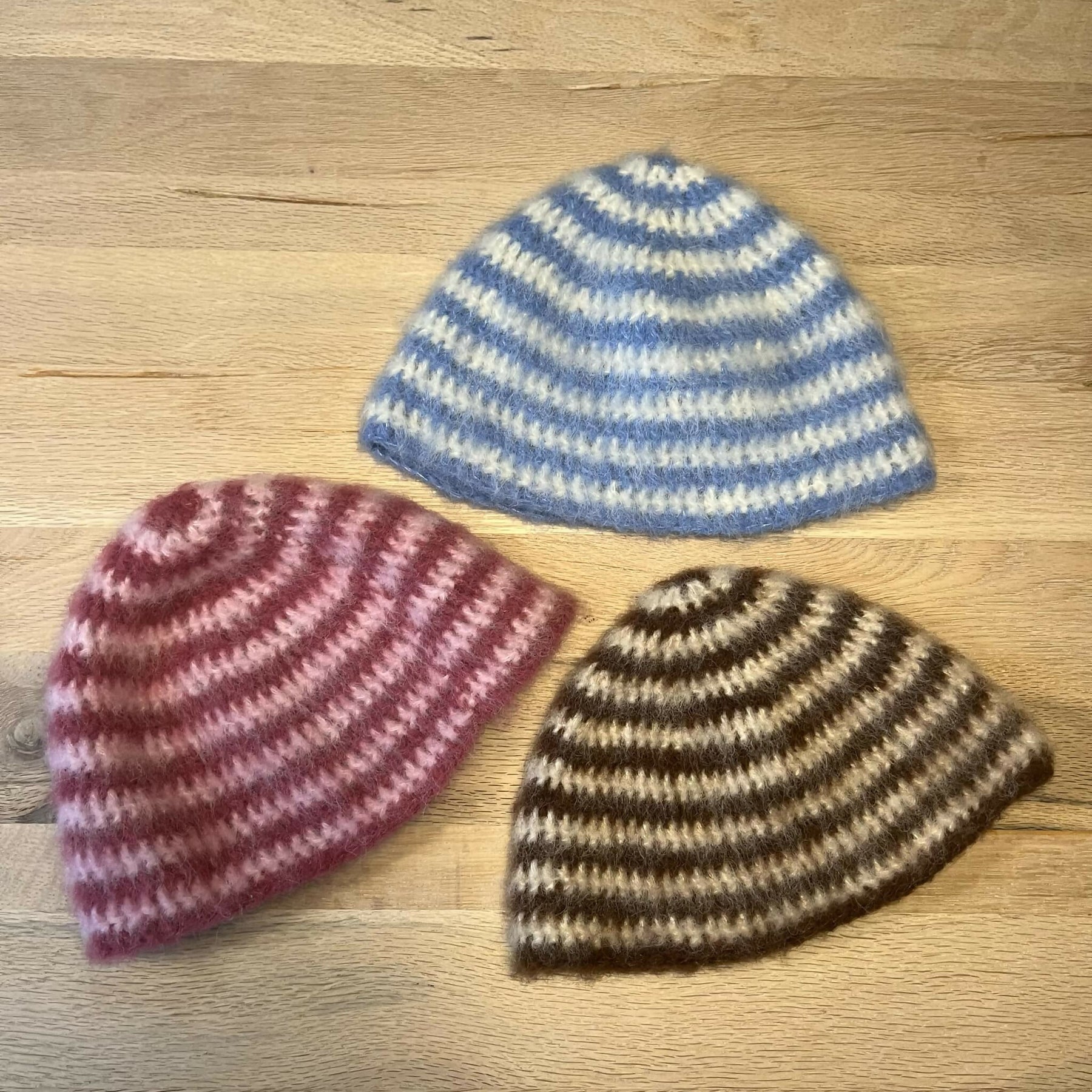 Denne stribede hue er hæklet i Drops Brushed Alpaca Silk, som giver en let, fluffy og varm fornemmelse. Huen hækles oppefra og ned i stangmasker, hvilket gør den enkel at lave og nem at tilpasse i længden. Opskriften er velegnet til begyndere, og let at forstå.
