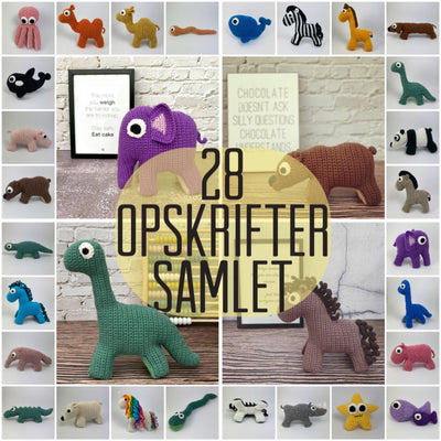 Her får du opskrifter til hele 28 hæklede dyr til én samlet utrolig billig pris!!