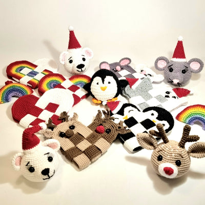 Man kan også hækle delene af tyndere garn, så bliver det små fine dele, som kan sættes på julegaverne, som en ekstra gave.