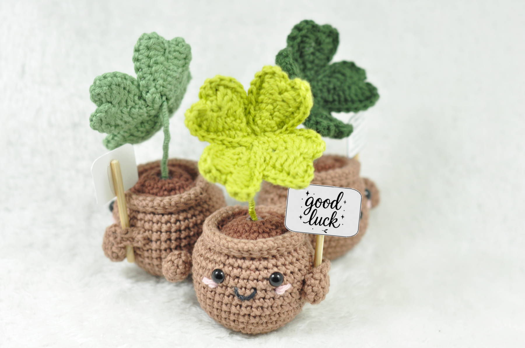 Denne kærligt designede hækleopskrift viser dig trin for trin, hvordan du hækler et fortryllende firkløver med en smuk tekst – perfekt som lykkebringer og en skøn gave til nytår.
