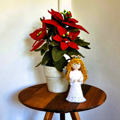 Mange nyder at pryde hjemmet med denne smukke, eksotiske plante i juletiden, men jeg tror ikke jeg er den eneste der har svært ved at passe den, så den beholder sine blade hele julen. Jeg har derfor designet en Julestjerne i hæklet version.