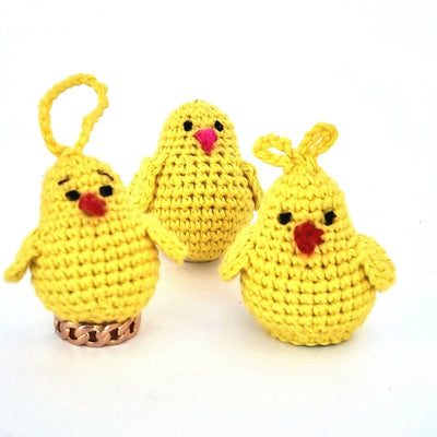 De små kylleryller bliver bare 4,5 cm høje og er perfekte til at hænge på en troldegren eller grene i en vase. Opskriften forklarer også hvordan de kan laves med en flad bund, så de kan stå og pynte på påskebordet.