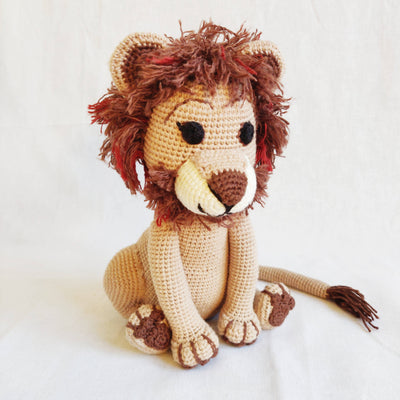 En sød og hyggelig løve, som måler ca 25 cm når han er færdig og hæklet i 8/4 bomuldsgarn på nål 2,5 mm.