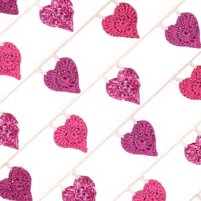 ”Min Hjerte-guirlande” er en hækleopskrift på en ranke/guirlande med små søde hjerter.