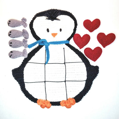 Brikkerne kan lægges i en lomme på bagsiden af pingvinen og rulles sammen, så det let kan transporteres.
