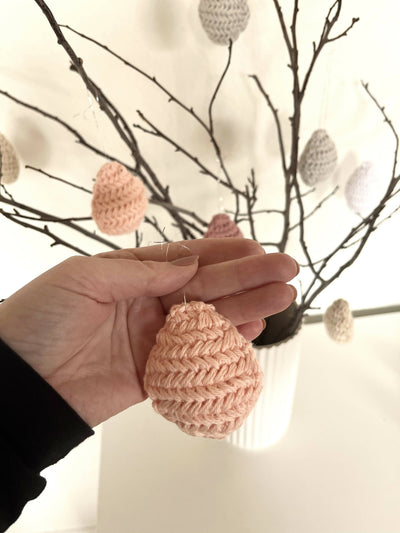 Sildebens Påskeægget er et flot hæklet påskeæg til at hænge op, hæklet i de smukke sildebens masker. Påskeæggene hækles i to tråde bomuld 8/4, 1 tråd bomuld 8/8 eller nogle af de lækre garnrester som kalder ovre fra hjørnet.