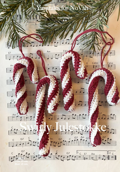 Swirly julestokke består af 2 størrelser i 2 forskellige udtryk. Derfor vil du kunne få 4 forskellige julestokke, hvis du hækler begge teknikker.