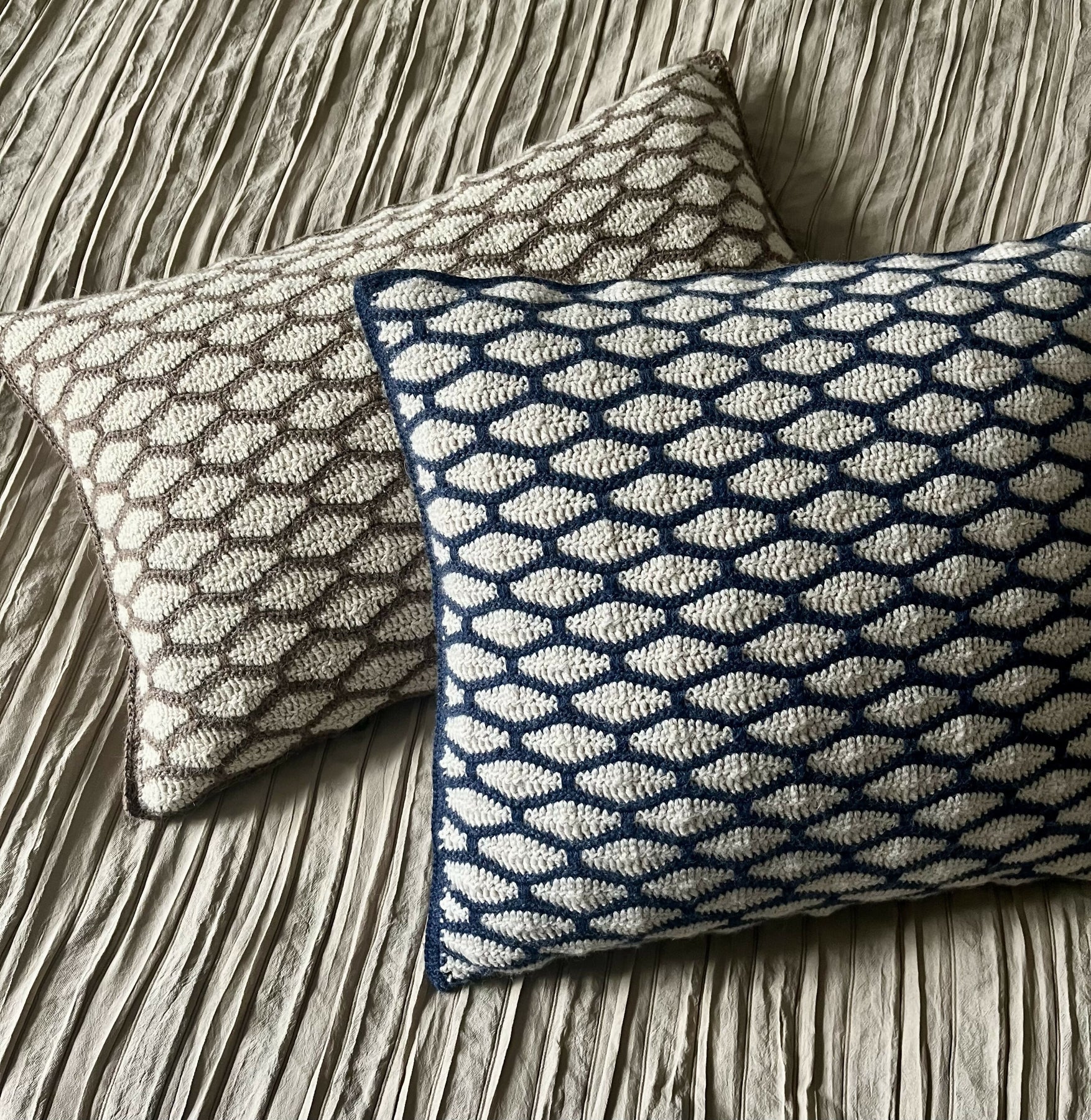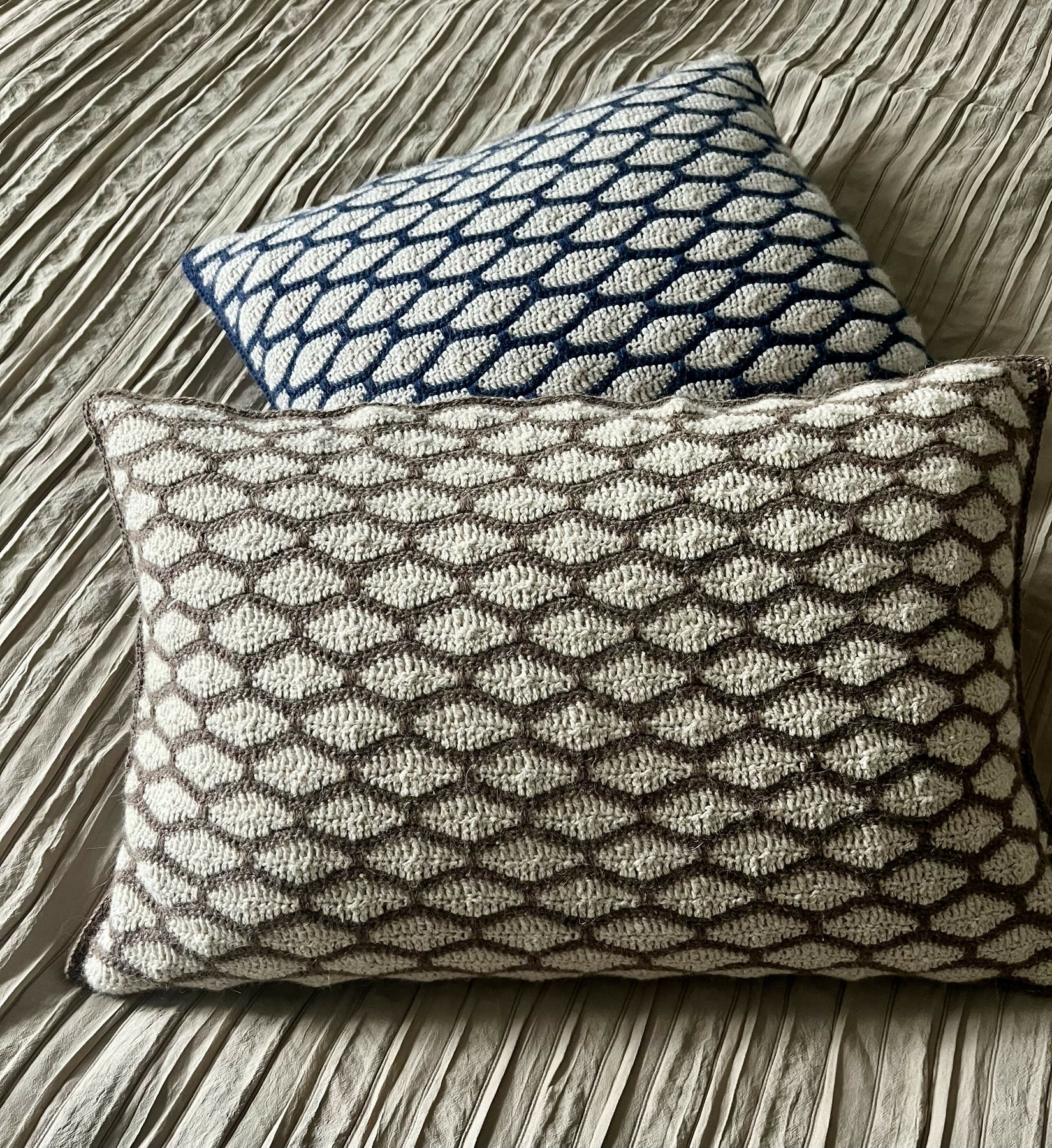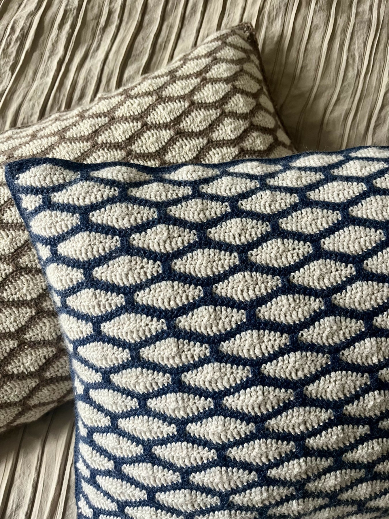 Wave pillow dannes ved at hækle to ens sidestykker i strukturmønster. Efterfølgende hækles siderstykkerne sammen med fastmasker og der monteres evt. en lynlås i bunden af puden.
