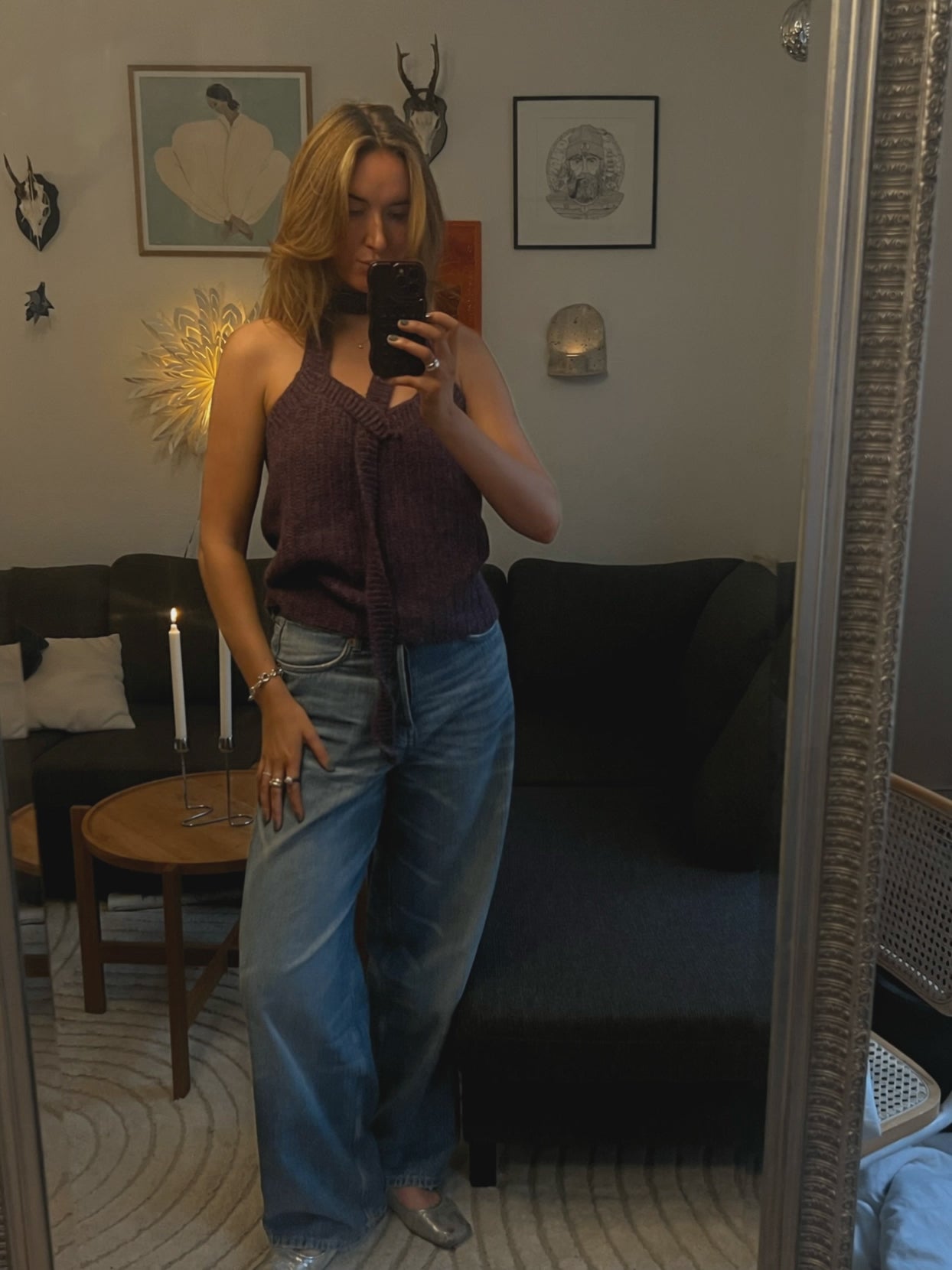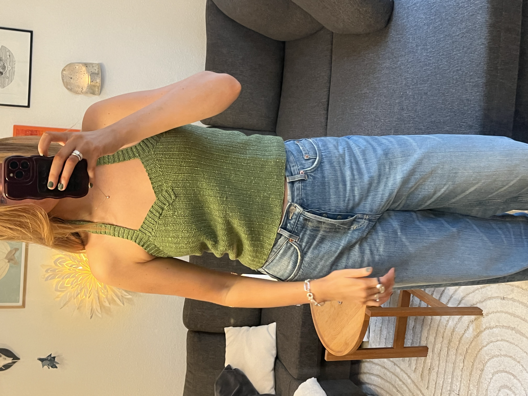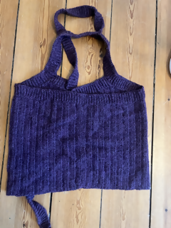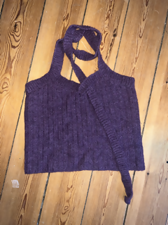 Stjerneskud er Maskebals første opskrift og har derfor en helt speciel betydning for mig. Den er inspireret af Saks Potts strikket vest, som jeg forelskede mig i og ville derfor lave en hæklet version med et tvist. Båndet går rundt om halsen og føres igennem et lille hul på venstre side af brystet og så har toppen en smuk åben ryg.