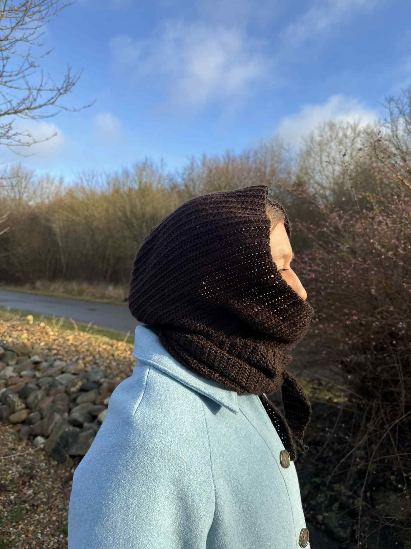 En opskrift på en hæklet Sophies Hood! Med en hæklenål 4 og 5 nøgler garn, kan du fremtrylle dette skønne tørklæde/hue i én.