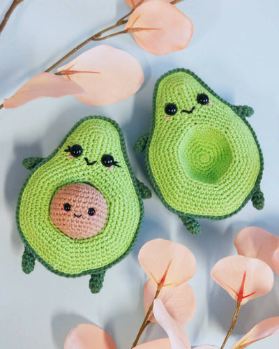 For at hækle avocado familien skal du udelukkende bruge bomuld 8/4. Du kan bruge det mærke du foretrækker, men jeg har brugt Lammy Cotton 8/4. Nedenfor kan du se hvor meget der skal bruges af hver farve: