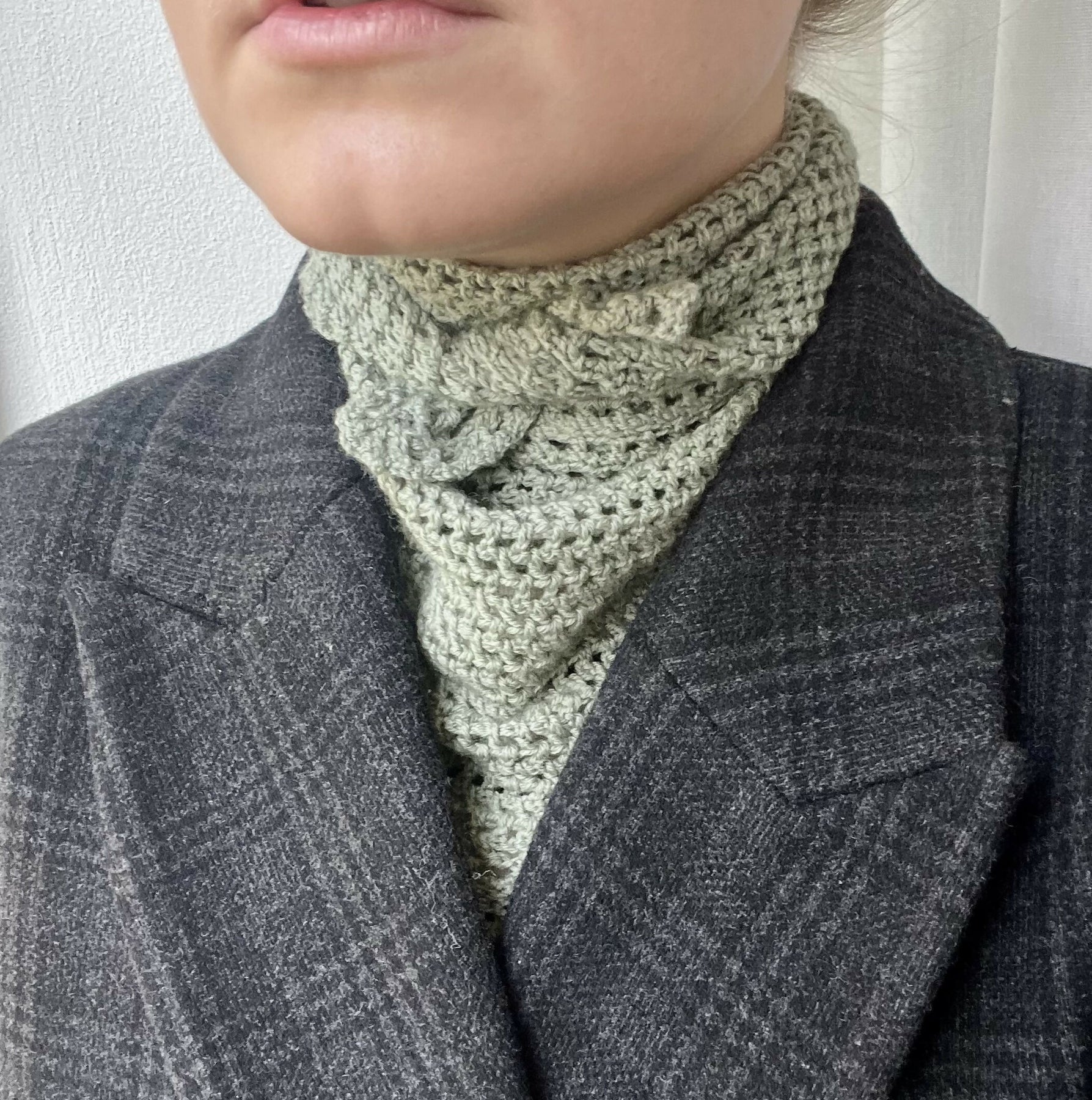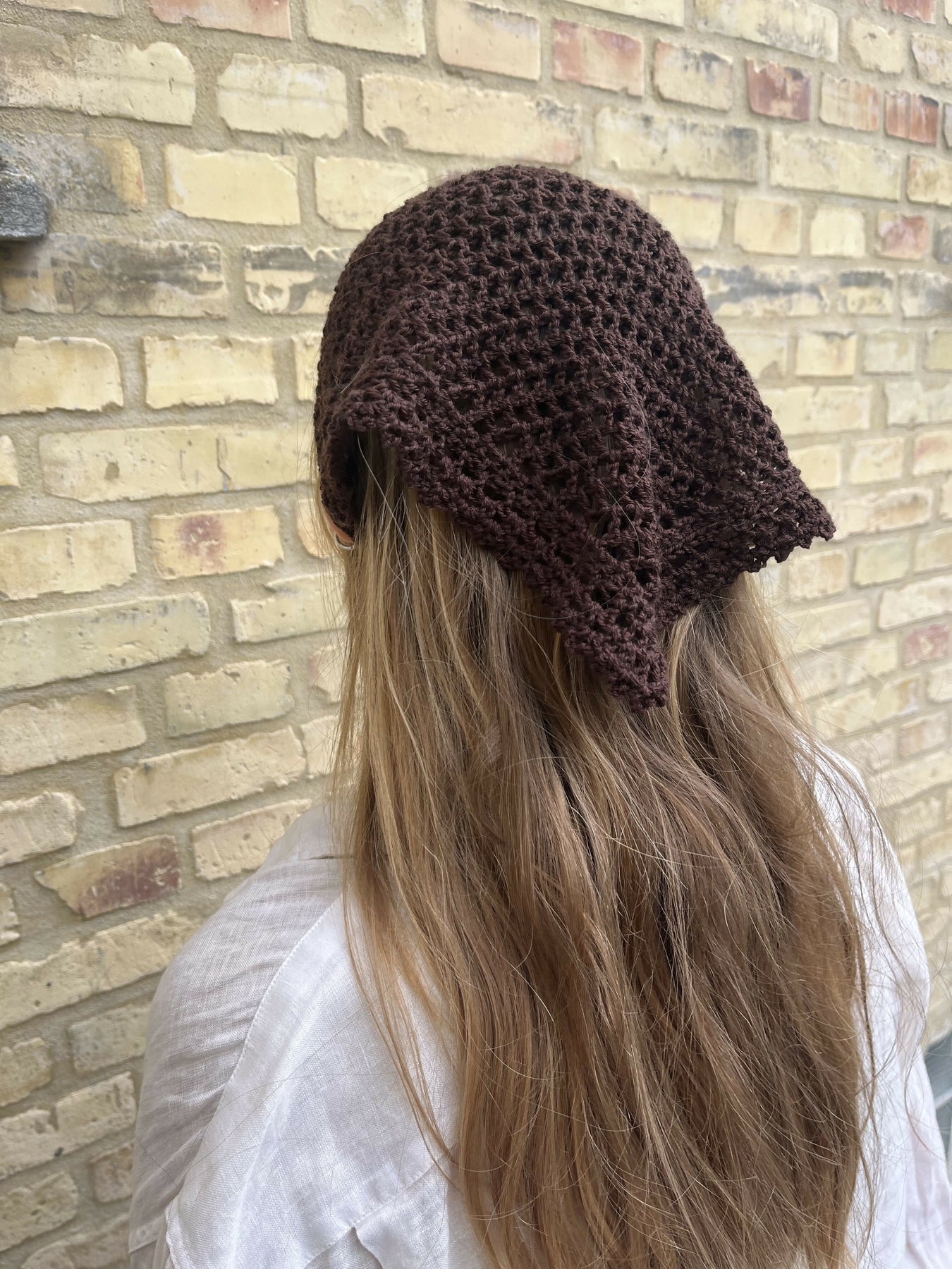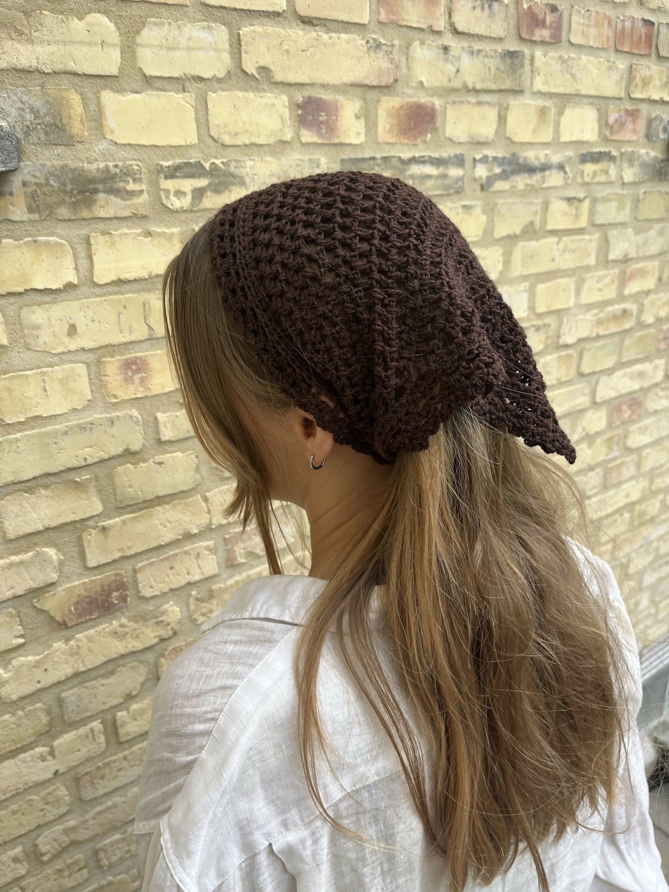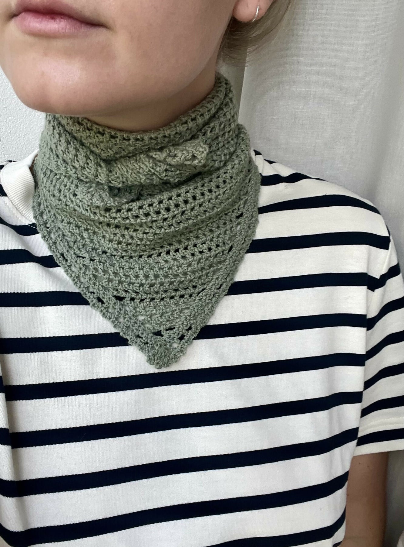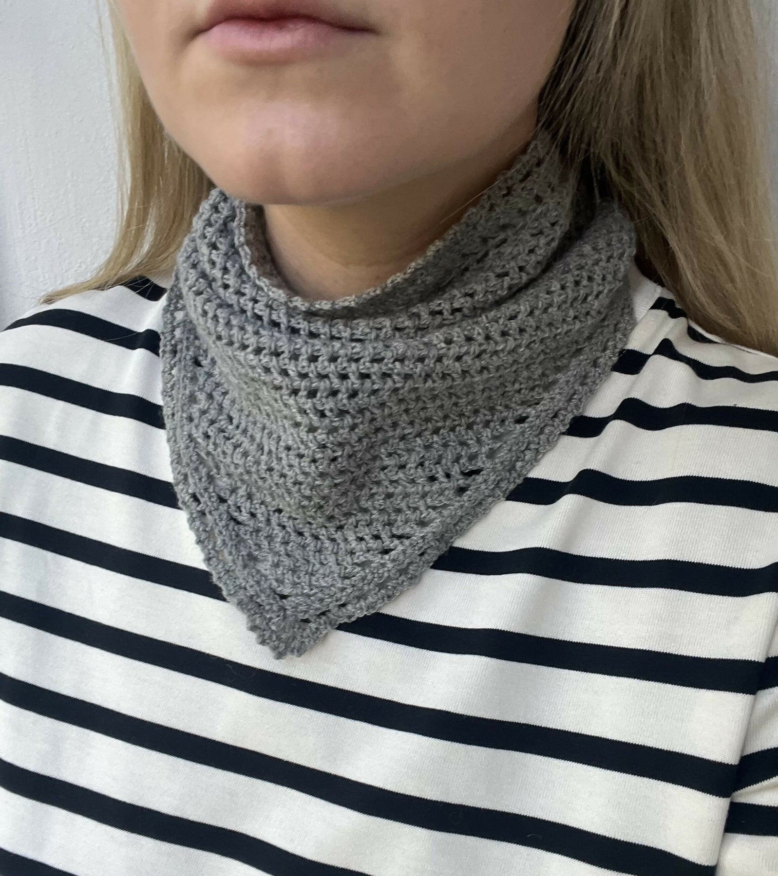 Bandana Scarf hækles i ét stykke, ved at hækle frem og tilbage i hulmønster. Tørklædet afsluttet med en stabiliserende kant efterfulgt af en dekorativ kant.