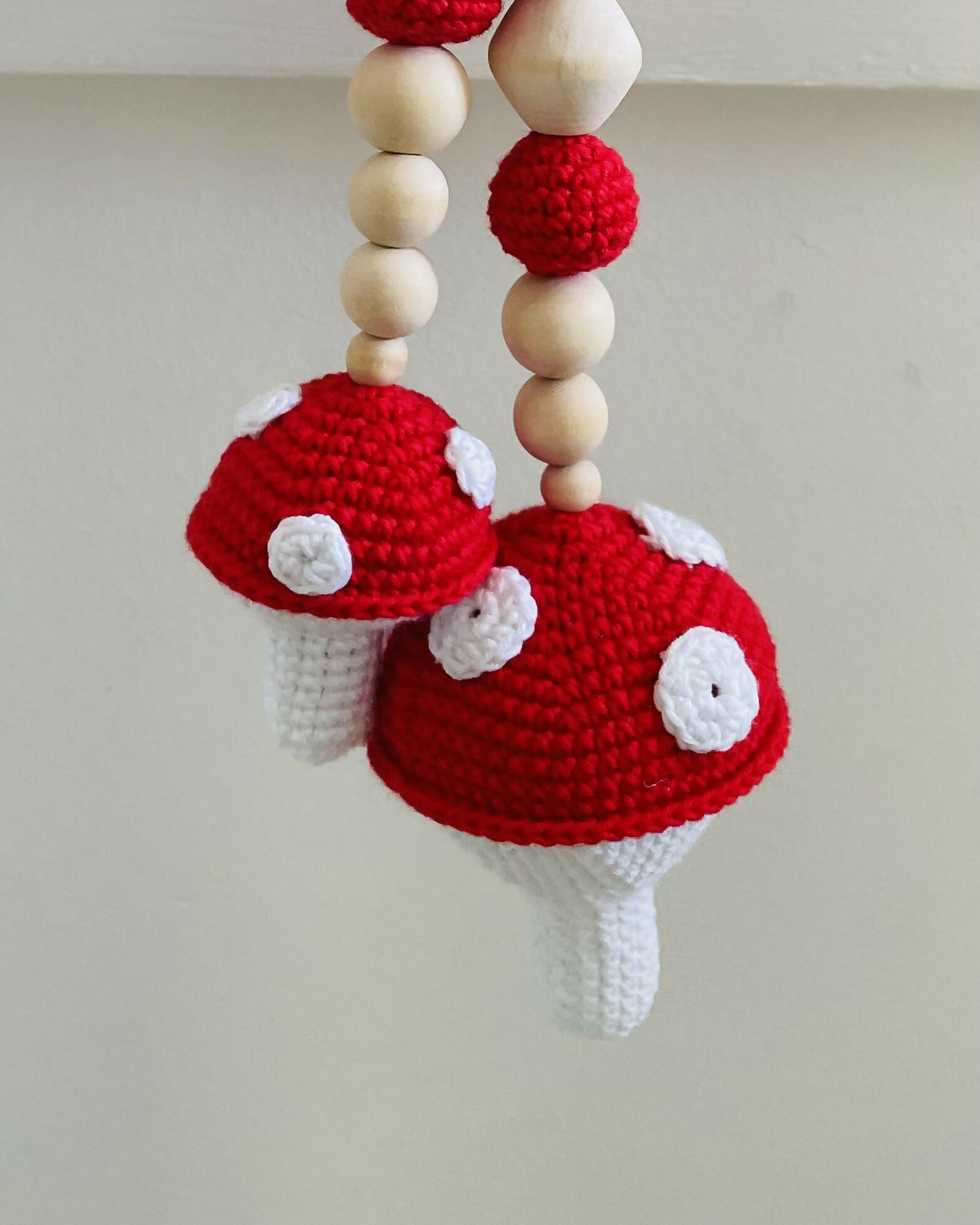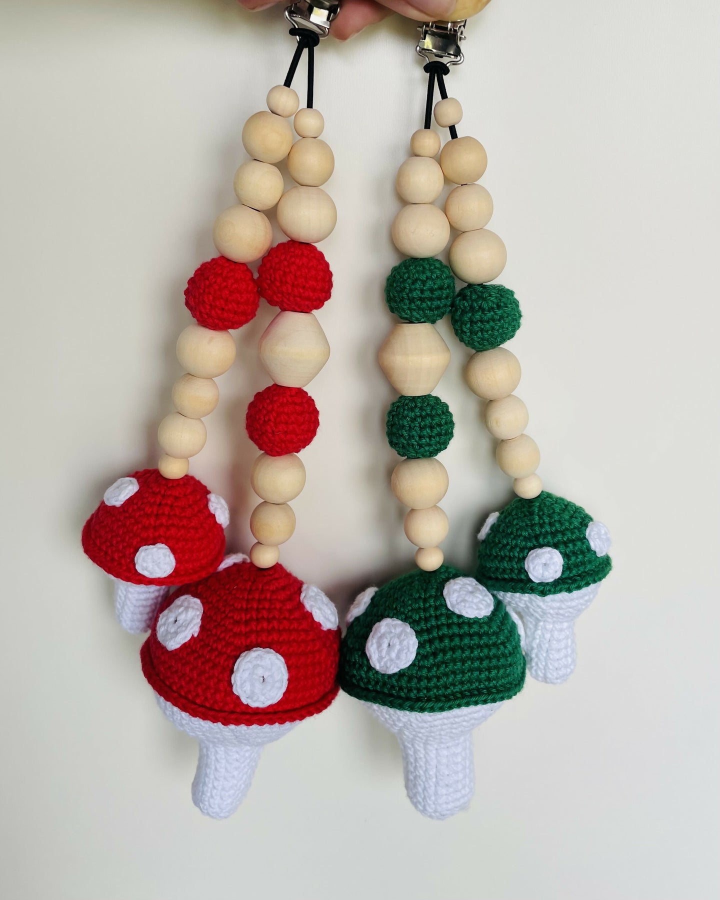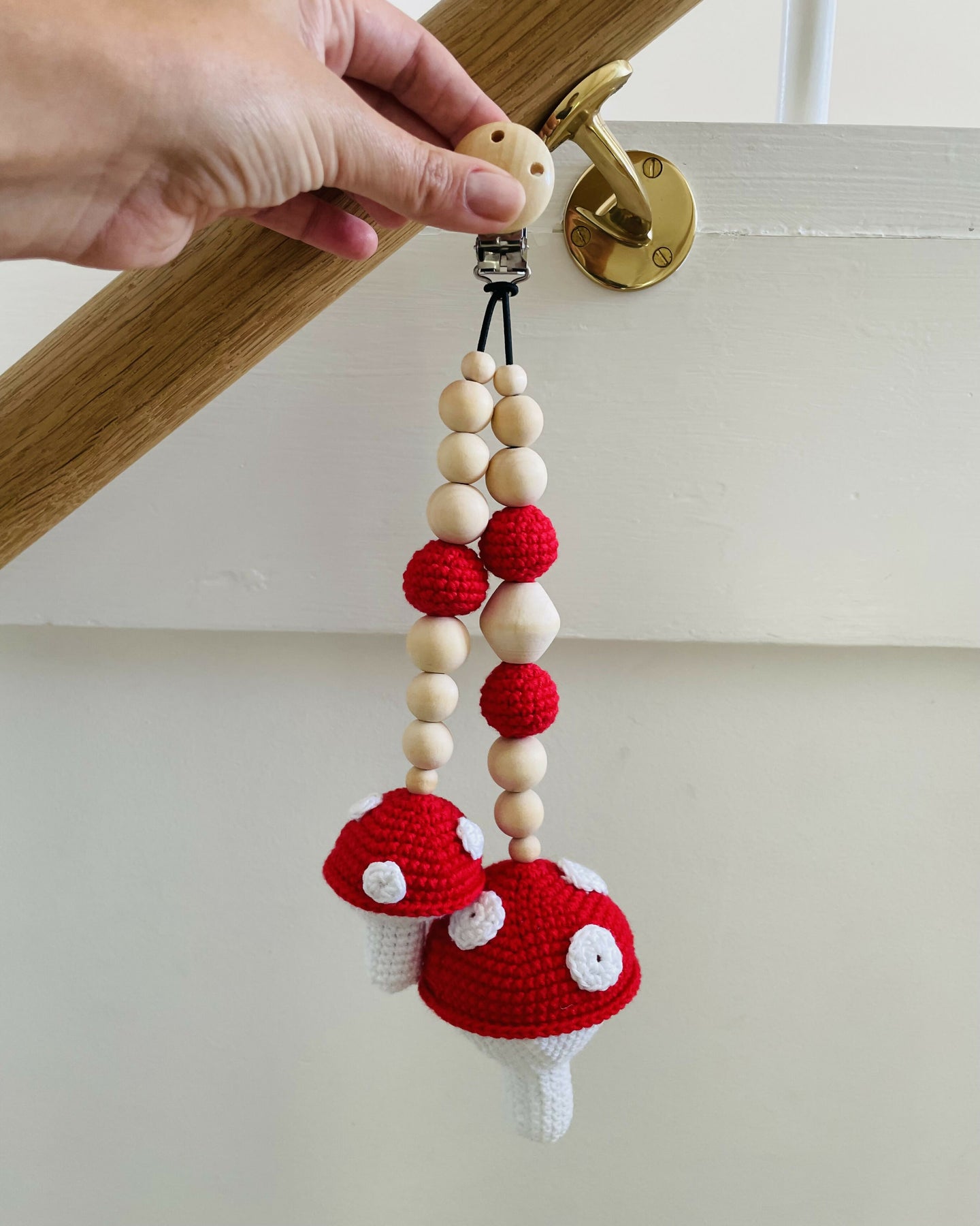 Efteråret står for døren og de smukke farver titter frem - det går paddehattene ligeledes. Denne opskrift på 2 søde paddehatte til et barnevognsophæng er kært og vil bringe glæde hos både store og små.