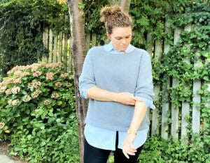 Blusen har trekvartærmer og er let oversize med en plusvidde på ca. 5-7 cm.