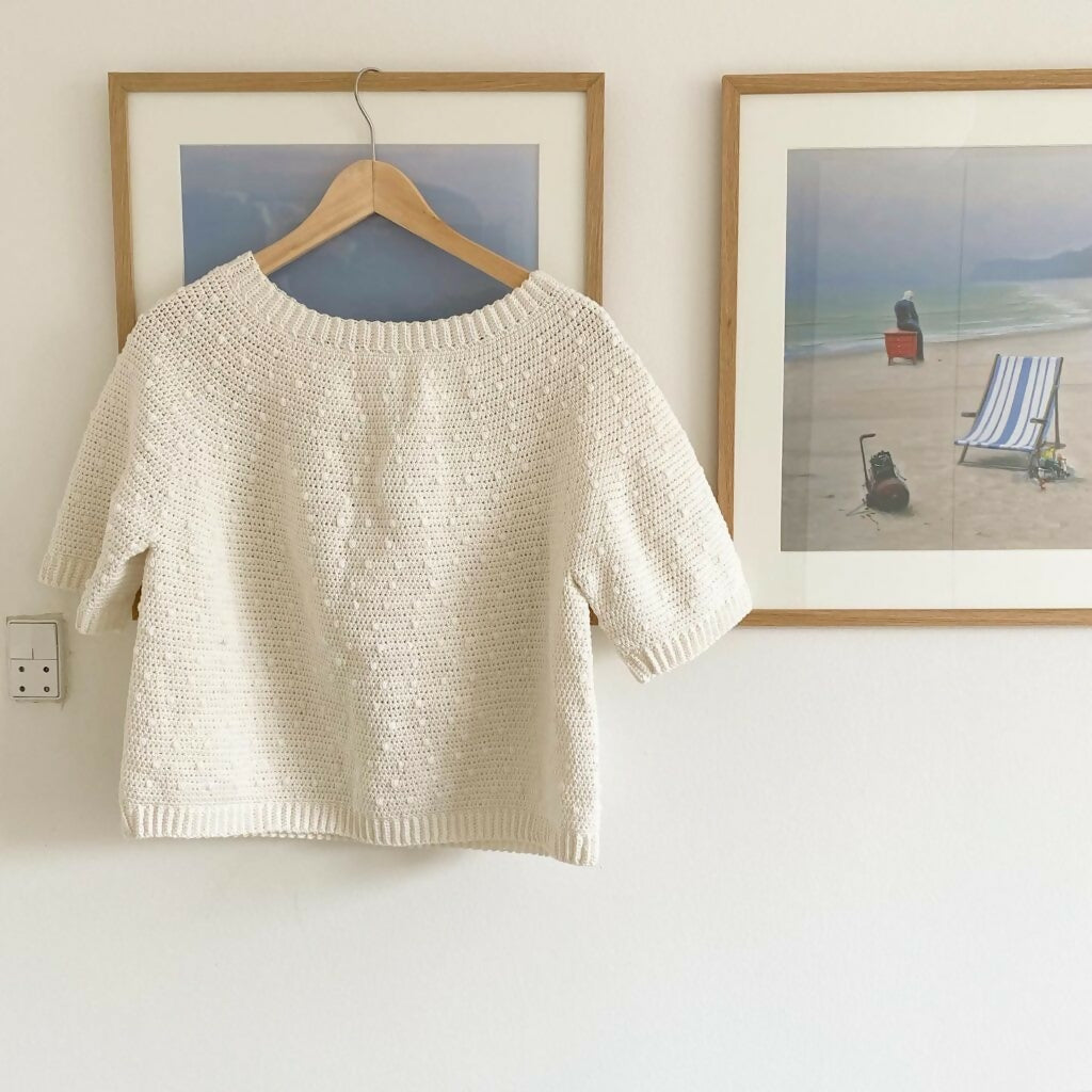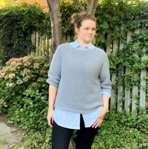 af:marie Boblebluse er en let bluse i et blandingsgarn af uld/bomuld med et fint boblemønster fordelt på hele blusen.