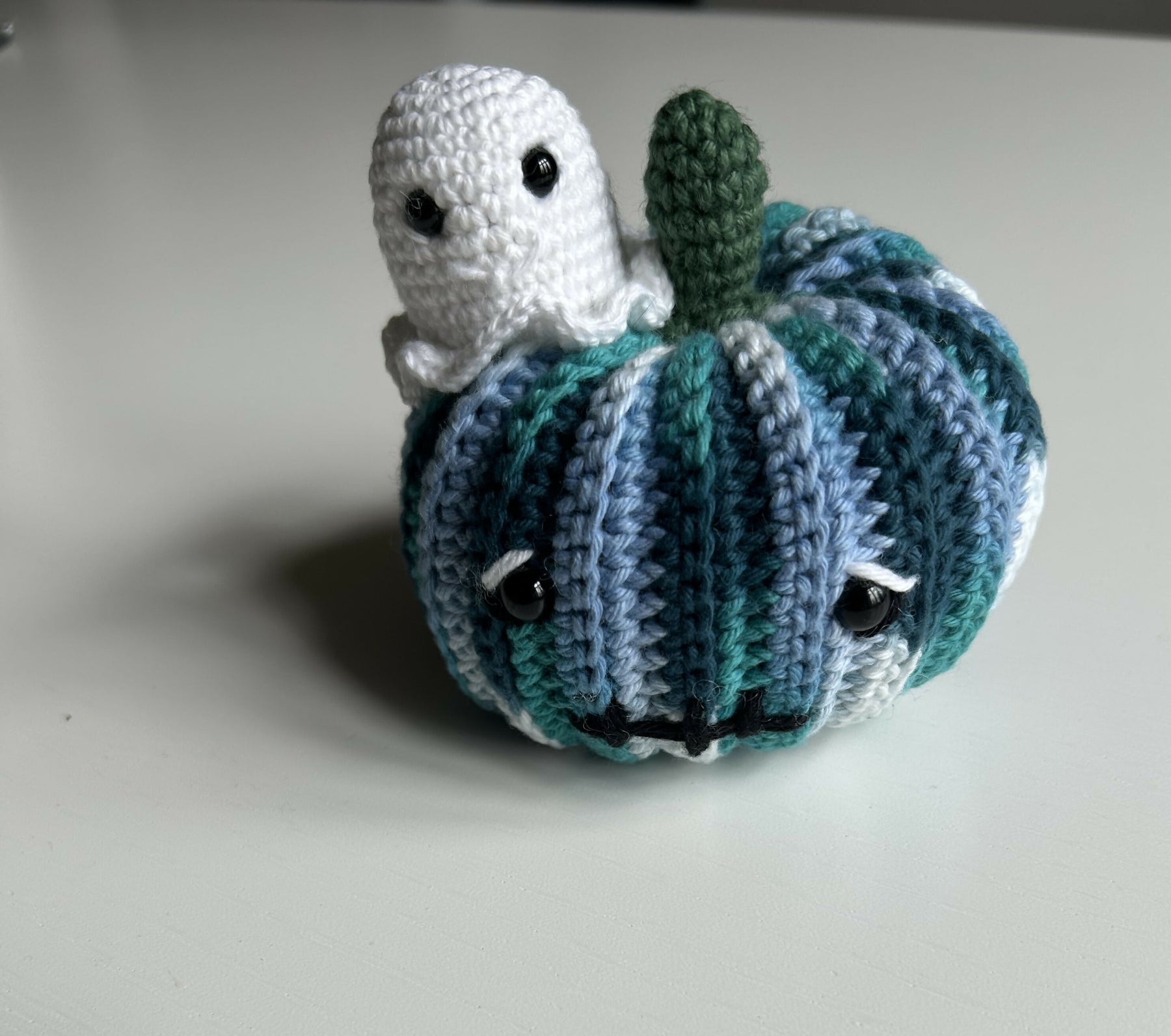 til opskriften skal der bruges bomulds garn 6/6 ca 50gram i multifarve og hvidt til spøgelse.lidt sort til mund..