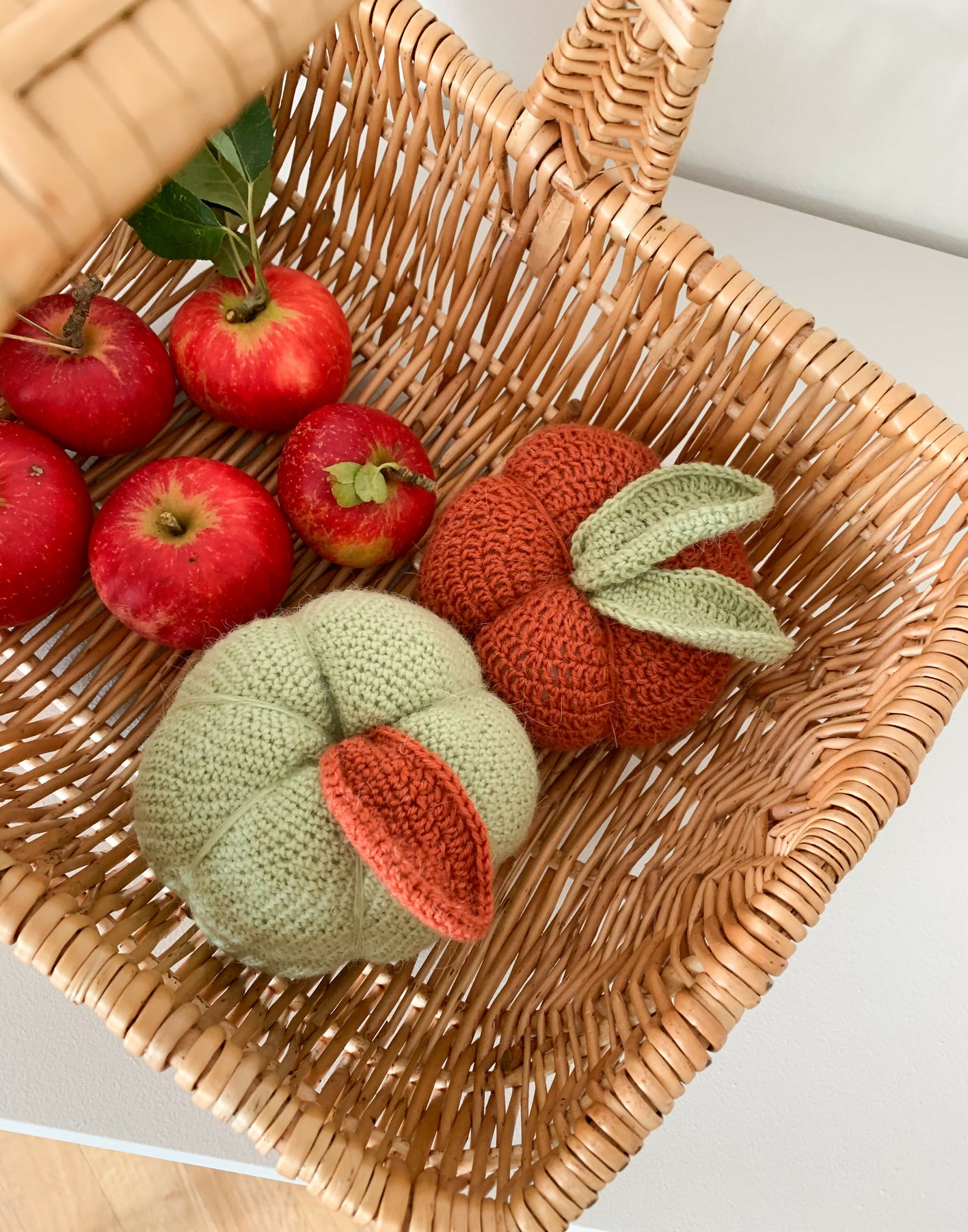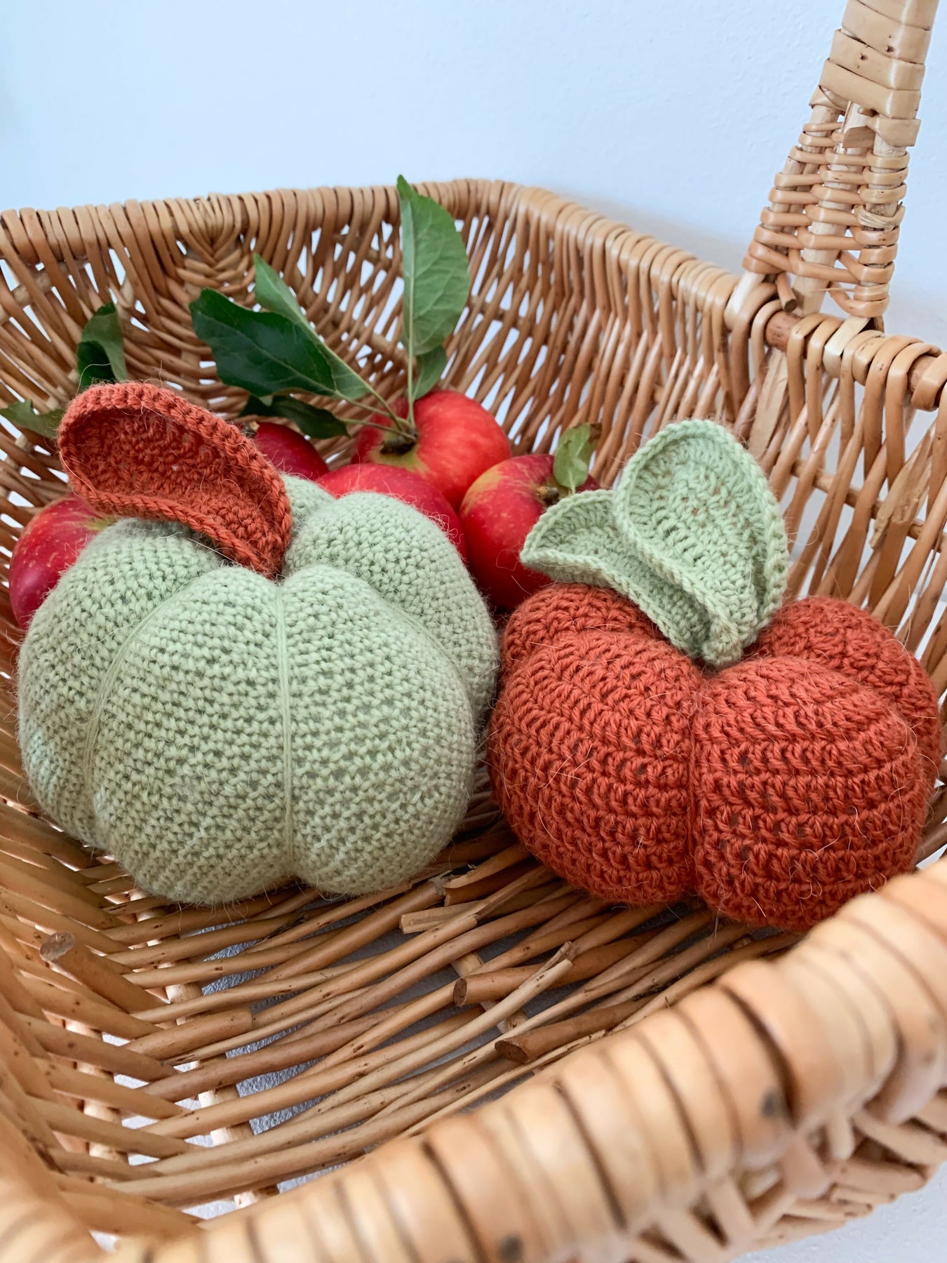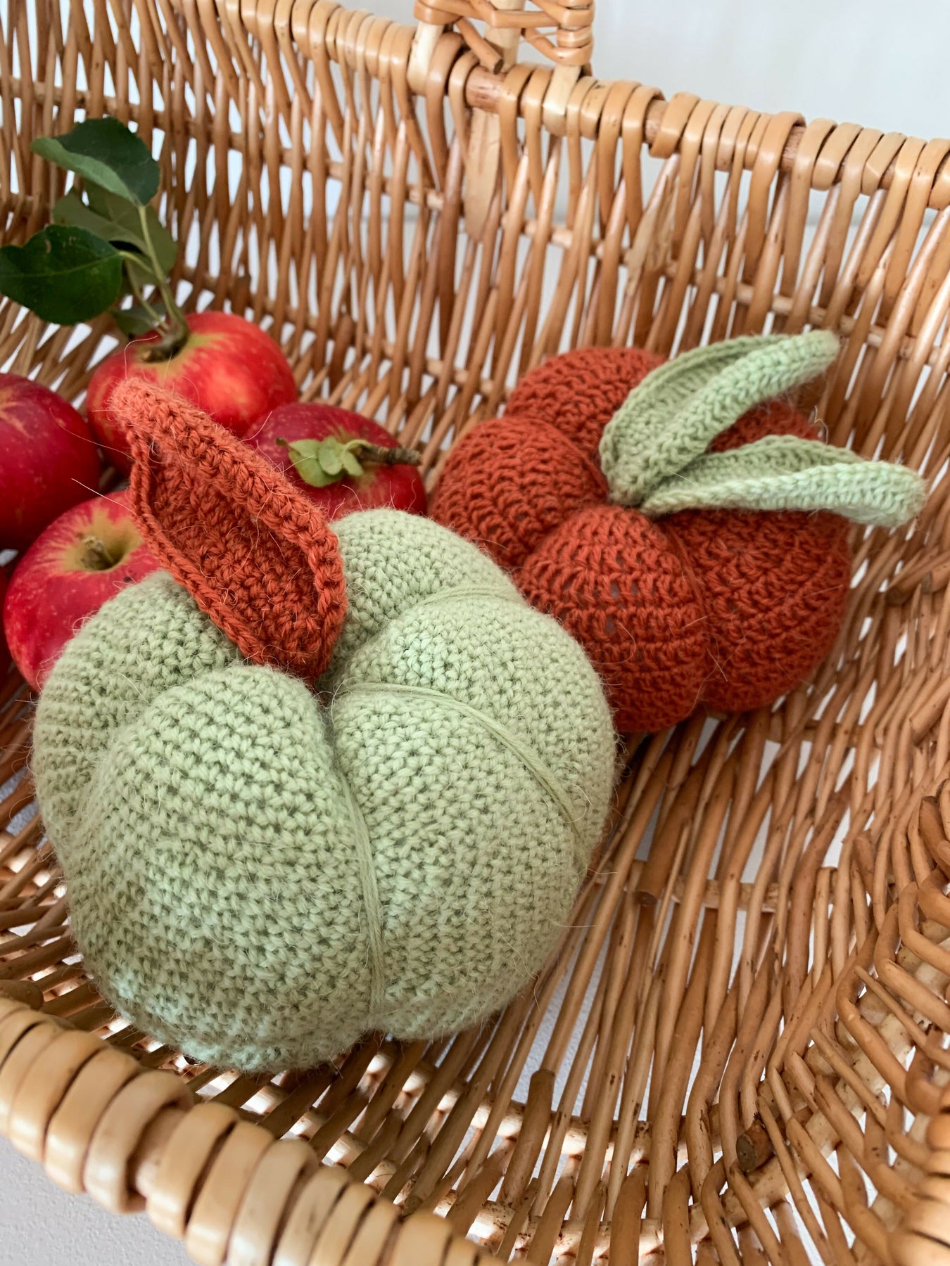Her får du opskrifterne på 2 forskellige pyntegræskar, et rundt og mere aflangt. De to græskar hæklet ud i ét og fyldes løbende med fiberfyld. Rigtig god fornøjelse.