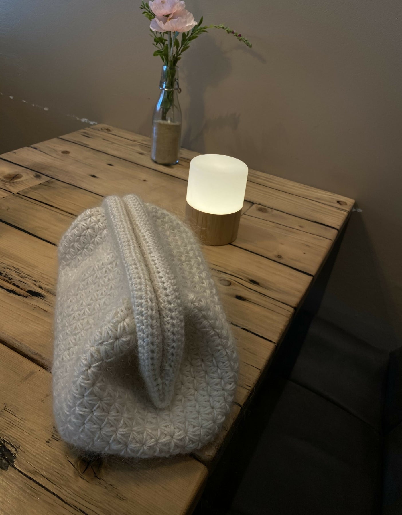 Jasmine Clutch er en elegant og moderne hækleopskrift, der kombinerer den smukke, teksturerede Jasmine Stitch med en blød garnkombination af bomuld og mohair. Tasken hækles rundt fra en fast bund i halve stangmasker og op i et luftigt blomstermønster, før den afsluttes med en metalramme, som giver et professionelt og holdbart finish.