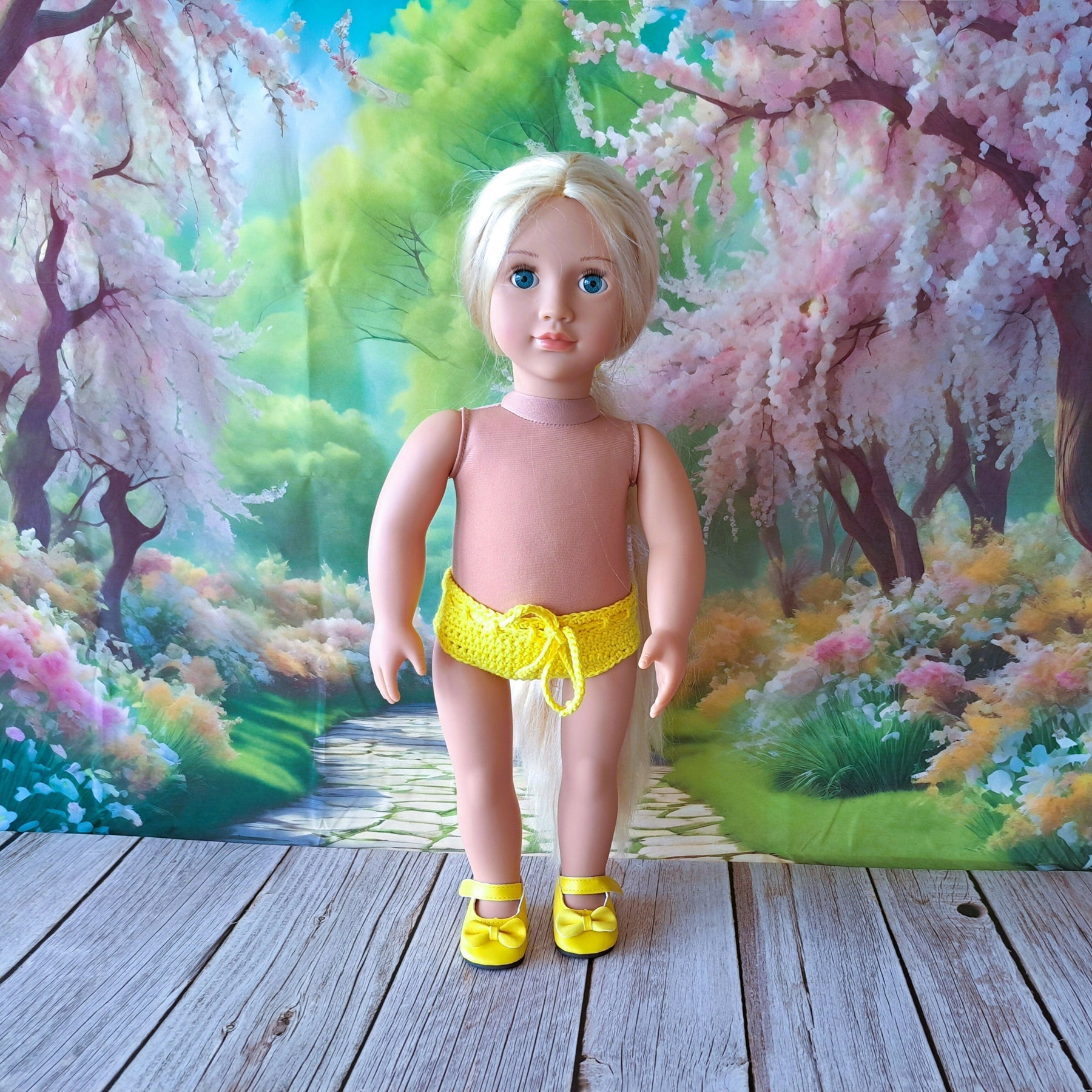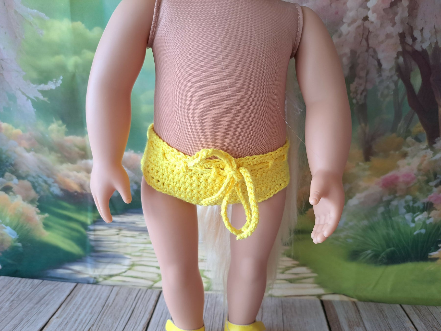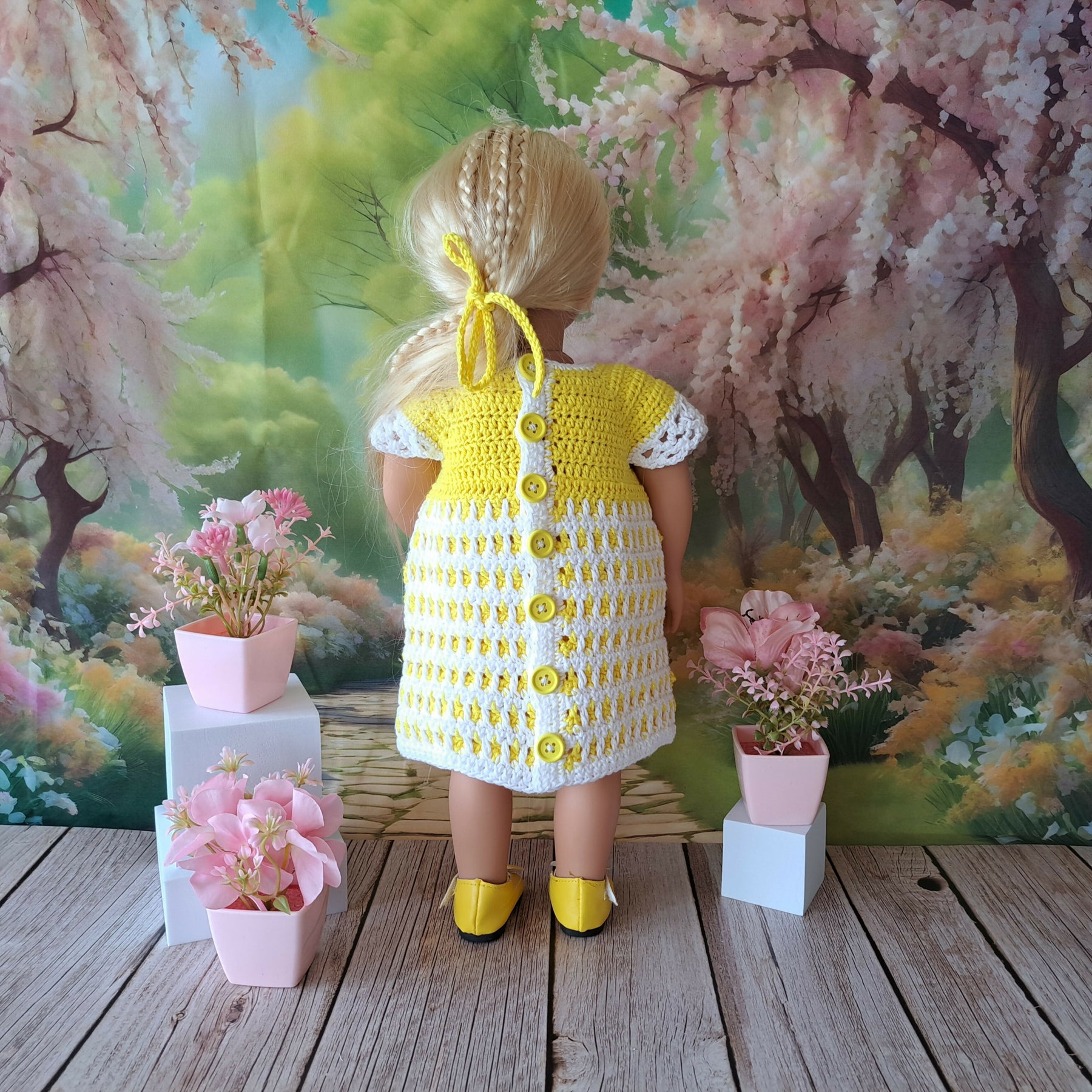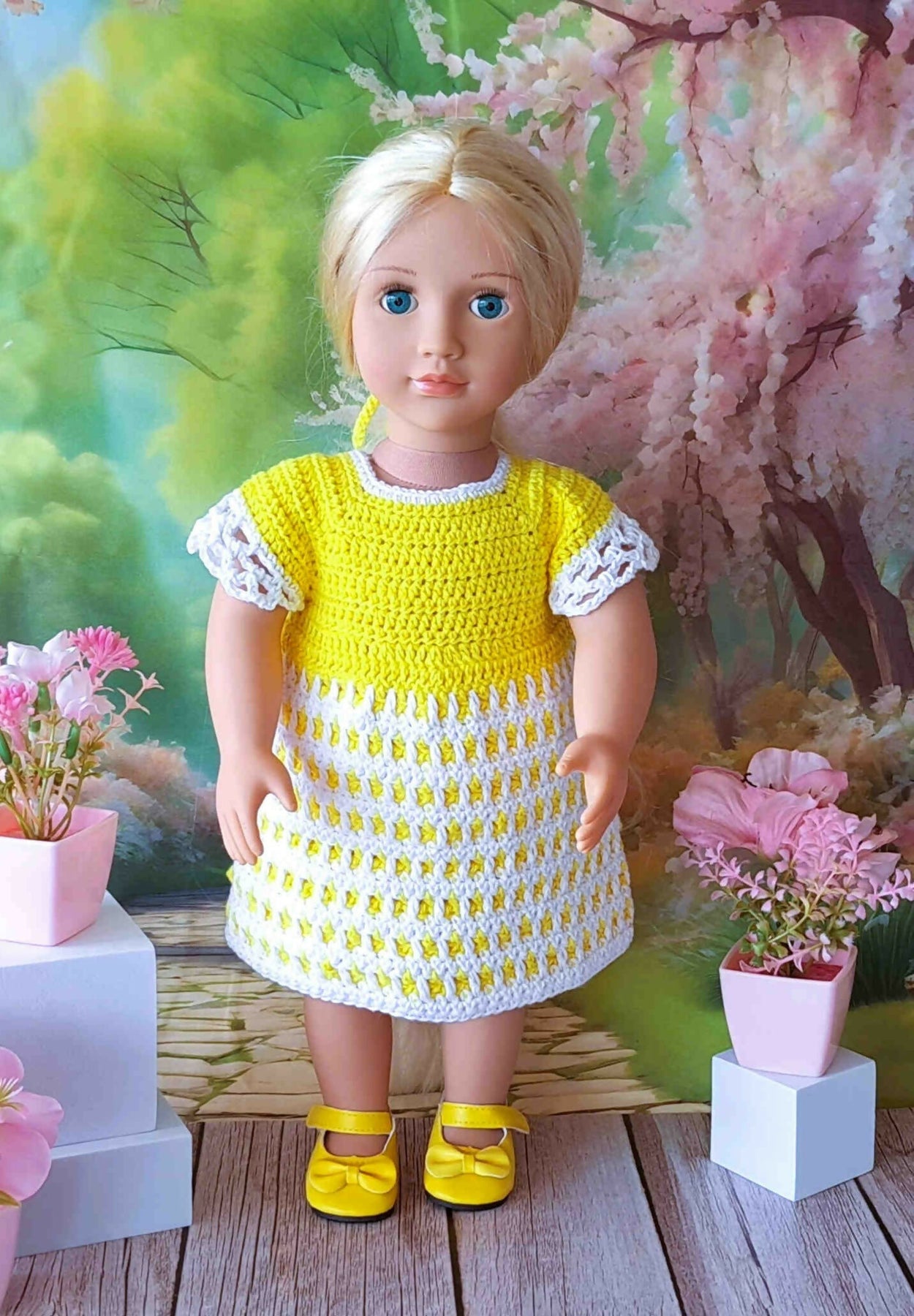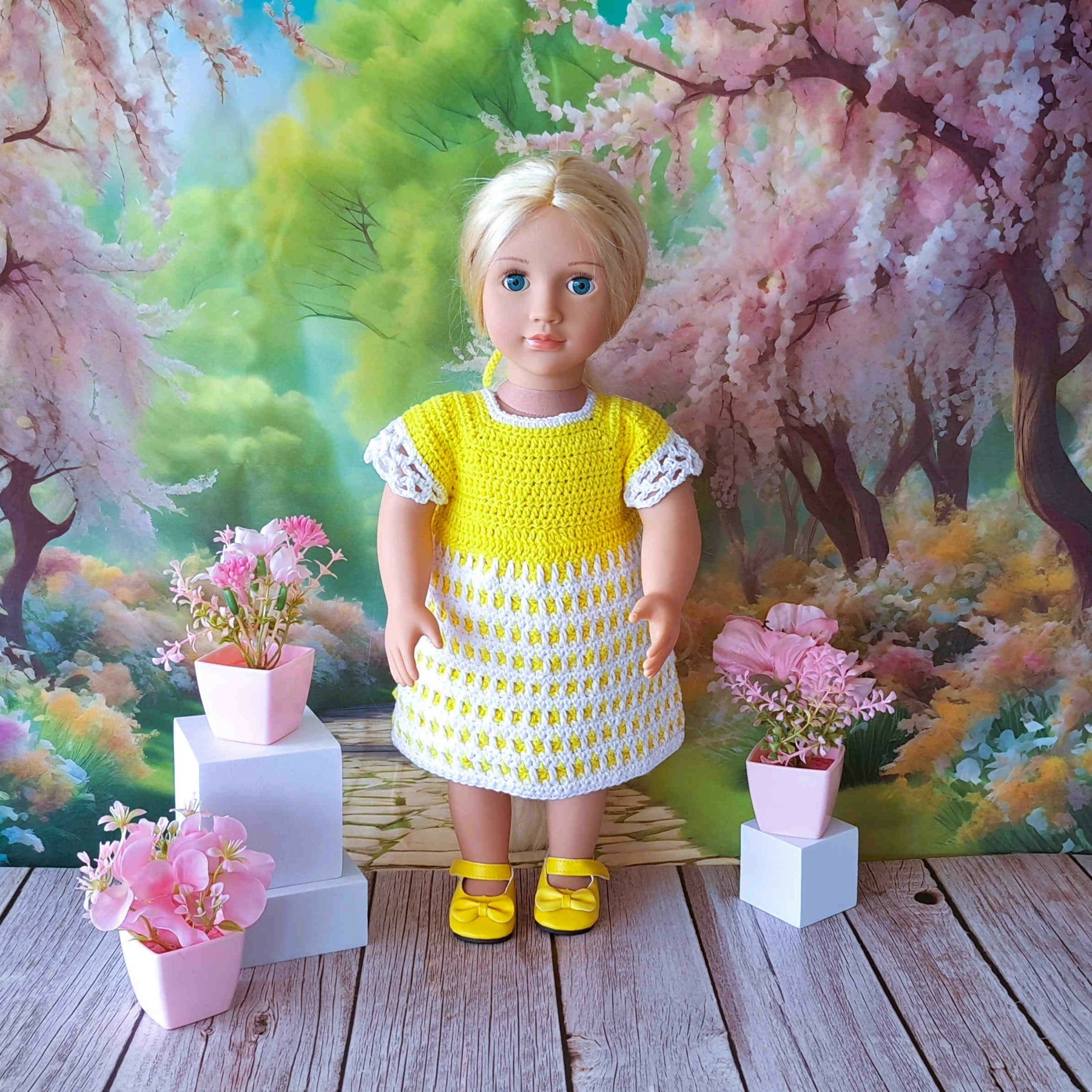 Mosaik kjole med trusser er hæklet I 8/4 bomuldsgarn og passer til dukker på 43-46 cm som f.eks Babyborn og Our Generation.
